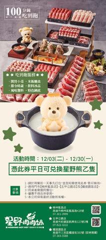 自助吧、火鍋湯頭選擇超多元 鍋醬平價小火鍋的鍋物價格百來 元就吃得到,餐點份量十足,搭配無 限自助吧更是令人大為驚豔。火鍋的 靈魂湯頭可說是一絕,湯頭口味除了 有「原味/沙茶系列」之外,還有「奶 油味增/蒜味奶香系列」、「壽喜 燒系列(附烏龍麵)」、「台泡/韓泡系列」、「香辣/綠咖哩系 列」及「素食鍋」等,鍋鍋美味物超所值,饕客大讚:「除 了吃鍋,自助吧也是重點,提供飲料、綠豆湯、餅乾、小奶 酪與冰淇淋…等多樣選擇,尤其是小奶酪,口感滑嫩,甜而不 膩,每次來都要吃上好幾個才過癮!」