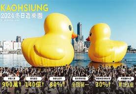 化及城市蛻變,帶起城市驕傲感——足見一場活 動的細膩安排與規劃,不僅帶來經濟效益,更呈 現多重的城市吸引力。」局長高閔琳感謝評審肯 定並表示,年初以黃色小鴨為主題的「2024 Kaohsiung Wonderland冬日遊樂園」成功引發黃 色風潮,並藉此述說高雄十年城市轉型蛻變,以 及愛河灣、亞洲新灣區發展的脈絡歷史。除開閉 幕及情人節「雙鴨會」首創全球動態展演進行小 鴨遊港外,更週週推出「港快跑鴨」、「愛河灣 自力造筏」、「金呱閃閃燈光展演」等創新活 動,成功創造「小鴨話題」及「追鴨風潮」,使 高雄燈會網路聲量位居六都燈會之最,吸引超過 900萬海內外旅客造訪。
