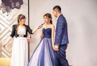 「想當初我台語不好,還有點怯步。」恬 恬笑著回憶起剛接觸婚禮主持工作的時候。熱愛 歌唱的她經常參加地方歌唱比賽,因緣際會認識 了當時的婚禮主持人安安老師,從而踏入這個充 滿挑戰與樂趣的行業。她由衷感謝地說到:「安 安老師當時告訴我,現在的年輕人婚禮不太流行 台語吉祥話,讓我安心許多。而且她和美姿美儀 的玫瑰老師都非常用心地教導我,甚至完成教學 後,還給了我許多實際主持的機會。」在這些機 會的磨練下,恬恬逐漸找到自己的風格,並克服 了最初的不安。她感慨地說:「勇氣跨出第一 步,真的很重要!如果當時沒有安安老師及玫瑰 老師對我的那份信任,就不會有今天的我。」