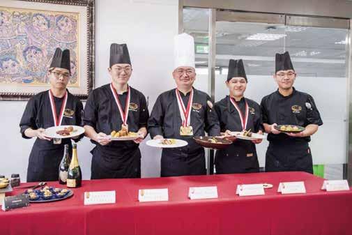 事首位奪金的台灣選手。獲得開 胃菜金牌的作品是結合台南將軍 烏魚子、東港黑鮪魚上腹、山葵 及特調焙煎芝麻,打造台灣味十 足的創意料理,精湛技藝獲評審 一致肯定。曾楷勛老師表示,參 與國際賽事不僅是自我磨練的過 程,更是為學生樹立榜樣,他也 在此次比賽中,以澳洲牛肉主菜 項目再度奪下金牌,並在日式海 鮮主菜項目拿下銀牌,臨場報名 的義大利麵組也獲得佳作成績。
