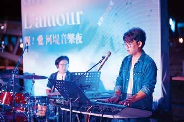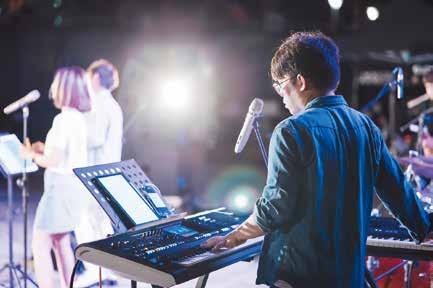 從無數次的演出經驗中,阿掌學會了不 被他人眼光束縛,享受音樂帶來的自由與 真實。「不管表演得如何,一定會有人喜 歡,也有人不喜歡,所以最重要的是做 自己。」他坦言,曾經很在意別人的評 價,但如今,他只專注於在舞台上展現最 真實的自己。作為伴奏者,他需要經常配 合歌手,這也讓他鍛鍊出強大的臨場反應能 力。他笑著分享到:「表演時,有時歌手忽略前 奏直接開唱,或者唱到一半跳段落,有很多突發狀況都是需要即 時調整,才能使演出順利進行。」這些看似突發的狀況反而讓表 演更具挑戰與趣味。他認為,舞台是自由創作的天地,而每一次 演出都像是一場全新的冒險,讓他持續熱愛音樂並享受表演。