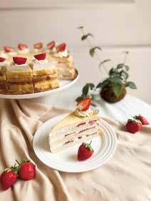 今年冬天姍姍來遲,大湖草莓也來得不易。老闆娘為此精心研製, 將草莓的酸甜香氣完美呈現於這款療癒草莓千層中,草莓上點綴 的食用金箔更讓蛋糕成為桌上焦點,一開賣就造成搶購熱 潮。老闆娘提到:「去年的草莓千層加入很多元素,今年 我們砸重本,加入了三層飽滿草莓果肉,每一顆草莓都 經過細緻清洗與手工擦乾,只為讓大家吃到草莓的最 純粹滋味。」療癒氛圍感不可少!即日起至2024年12 月31日完成下單與匯款,更可享優惠價每顆1500元, 讓甜點愛好者以更實惠的價格提前慶祝聖誕與跨年。