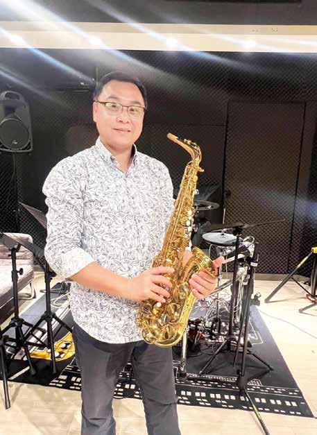 舞台上的真實與自由:做自己,享受音樂 與實戰經驗的結合。「師父領進 門,修行在個人。」他笑著說, 希望學生能靈活應用所學,而不 是僅僅死板地學習譜面。他經常 與學生分享演出經驗,教導他們 如何面對舞台上的突發狀況。看 到學生成功站上舞台,是他最有 成就感的時刻。阿掌說:「音樂 這條路沒有好不好走,重點是有 沒有足夠的熱情與信心。一路上 走來要感謝的貴人太多,家人不 吝給予資源與支持,以及我的好 老婆兼戰友黃子萌,一路不離不 棄地陪著我前進,雖然路途中或 多或少會遇到關卡,但我相信一 切都是神最好的安排,未來我們 將持續把音樂的美好回饋更多的 人,包括我們所信仰的基督教教 會,不論是教學還是創作敬拜歌 曲,我都會不遺餘力地散播喜 樂,傳承信仰。」