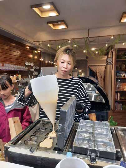 以黃金比 例調配的麵糊 是日式脆皮雞 蛋糕的秘密武 器。闆娘說: 「麵糊絕對 是靈魂!」 現點現做, 熱吃酥脆、冷吃軟Q的脆皮雞蛋糕 口感獨特、造型可愛,下午放學時 間總能吸引許多家長帶著孩子來購買 ;鹹派更是大家的心頭好,也是闆娘 最自豪的得意之作!據說有一位忠實 鐵粉幾乎天天報到,甚至都連續吃同 一種口味,有些熟客也會客製化訂購 ,直誇老闆娘的手藝真棒!闆娘貼心 提醒:「雞蛋糕都是現點現做,建議 可以先電話預訂,以免久候喔!」