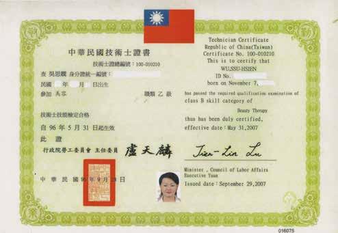 資生堂任職六年半並曾獲選年度模範員工 中華民國美容乙級技術士 台南應用科技大學指導老師 EAMT孕婦按摩國際證照