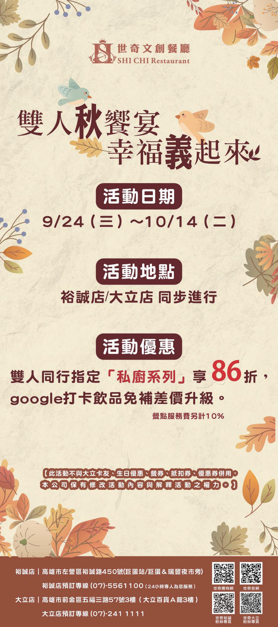 【記者/吳昭緣報導】新光三越高雄左營店「秋季購物節」於即日起至9/21 登場,百貨服飾秋季新品首波8折起!此外,左營店也導入多家獨家人氣品 牌,帶給高雄地區消費者優質的美食饗宴與購物體驗。而即日起至9月28日 止,新光三越高雄左營店獨家推出韓國人氣男團SEVENTEEN的「MINITEEN HOUSE PARTY」快閃活動,邀請全台克拉(CARAT)們快衝高雄,搶先收藏官 方限定周邊。新光三越也推 出「秋日會員獨享好禮回 饋」,於9/19(五)-9/21(日) 期間持skm pay綁定10大指定 銀行信用卡,當日當店單卡 刷卡消費達指定門檻,即可 至贈品處兌換「指定贈品」 乙份。活動詳情請依官網為 主,或洽(07)346-9999 新光三越高雄左營店秋季購物節登場