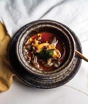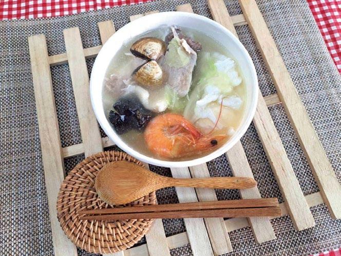 「以家常食材,煮出天然好滋味」一直是饌鍋物堅持的料 理主軸。小鳳分享:「我們店內的許多品項都是自己做,也嚴 格把關原物料,這不只是對客人健康的承諾,更是我們最大的 優勢!例如湯底採雙湯底呈現,其中主要湯底更是傳承自父親 的熬湯秘方。每天堅持以蔬果現熬 5~6 小時,湯頭清甜自然,客 人直接飲用也沒有問題!」