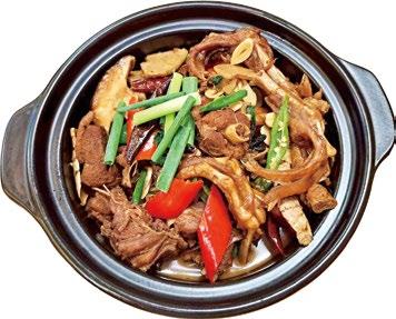 「卿.吳家羊肉」除了主打手切羊肉,增添獨特口 感,料理更是下足功夫。有老主顧推薦:「來這裡必吃蒜 泥羊肉、蔥爆羊雜、羊肉蛤蜊湯、胡椒羊排,蒜泥羊肉的蒜泥 還是特調的;羊肉蛤蠣湯超特別,羊肉的軟嫩與蛤蜊的鮮甜簡直絕 配!還有骨髓料理也別錯過!蔥爆系列的(燴)(炒)飯、麵、米粉,深 得重口味喜愛,都是以當歸湯頭入味,超厚工!而且飯、麵、米 粉晚上八點後還加量不加價,味蕾和心靈都滿足!」