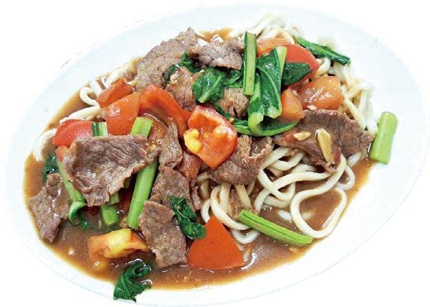 人氣招牌「沙茶牛肉」,有別於坊間是採用肉絲,老闆堅 持以「肉片」炒製,讓客人直呼:「肉片給好給滿,真的太 幸福了!鮮嫩牛肉搭配濃厚沙茶,不論單點,還是做成燴 飯或燴麵,吃過就再也回不去了!」說到「青椒牛肉」直 逼餐廳級,青椒的鮮脆與牛肉的彈牙形成完美對比,一秒 光盤絕對沒問題!還有經典「蔥爆牛肉」更是誠意十足, 不單單只有蔥,還搭配白菜與青菜拌炒,讓饕客為之驚 豔!此外「番茄牛肉」也堪稱一絕,老闆巧妙運用百搭的番 茄與牛肉的特色,入口層次感讓人一吃就愛上!老闆的好手藝 連平凡不過的蔥蛋、九層塔蛋都令人讚不絕口,連岡山、台 南、台中的客人都慕名聞香而來,就知道有多厲害了!
