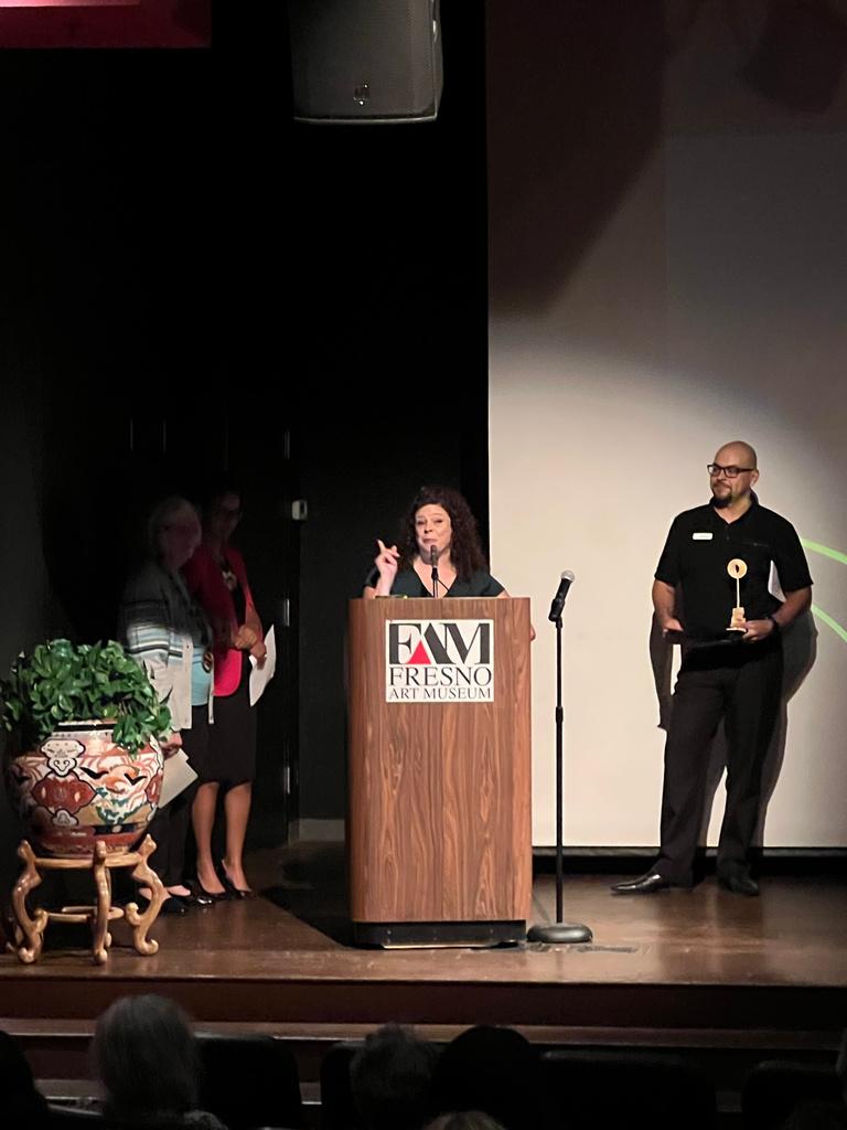 On Sunday, October 16, 2022, Fresno Arts Council hosted its 37th annual Horizon Awards in the Bonner Auditorium at the Fresno Art Museum Over 100 guests attended to celebrate the contributions to Fresno's arts community by seven individuals and organizations Each year, Fresno Arts Council accepts nominations to honor artists, patrons, organizations, and advocates who work tirelessly to enrich our community through the arts