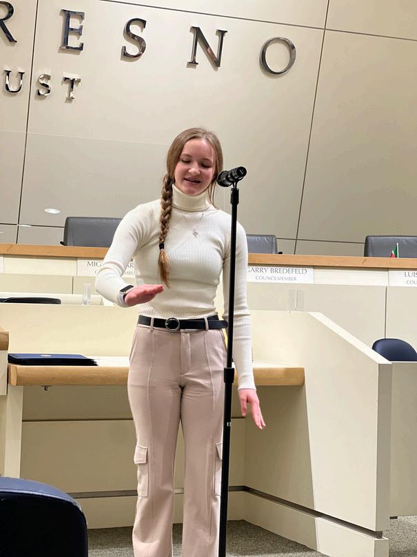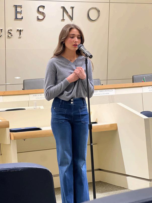Clare Nadores, from San Joaquin Memorial High School, advanced to the California State Poetry Out Loud contest on March 17, 2024 “With the support of my teachers and coaches," Nadores said, "Poetry Out Loud has taught me how great writers’ words convey emotions we can all feel and make our own Reciting poetry is like playing music, and I feel proud to be an instrument to these artists whose works I so deeply admire and relate to ”