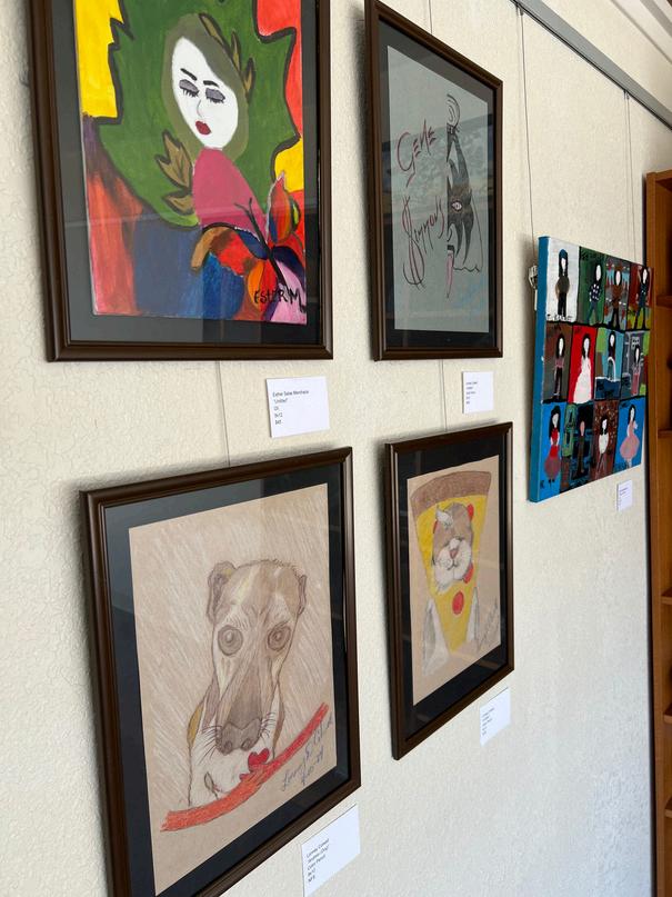 Art created by Art Haven participants hangs in the Fresno Arts Council gallery. Visit FAC during ArtHop or business hours to view and purchase Art Haven works.