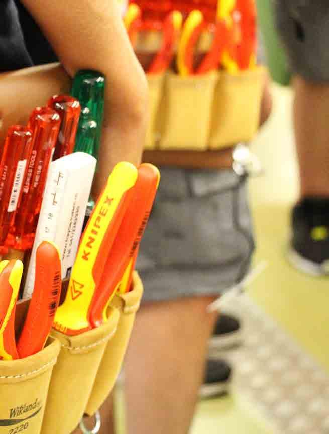 Sie sollen einfache Pläne und Schemas von Grundschaltungen verstehen und möglichst selbständig in die Praxis umsetzen können. Dazu gehört auch das Erkennen und Anwenden von oft verwendeten Materialien und Bauteilen. Benennung, Handhabung, Anwendung von Werkzeugen und das Kennen deren Gefahren sind absolute Grundlagen. Es ist uns wichtig, dass die Lernenden dafür sensibilisiert werden.