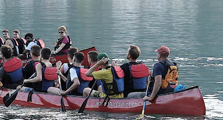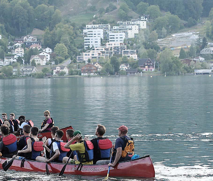 Der Abend in Kajaks und Kanadiern auf dem Vierwaldstättersee gehört zum festen Bestandteil des Basic Camps. So recht wussten die Jungen dieses Jahr nicht, ob sie das Badetuch dazu mitnehmen sollten. Eine halbe Stunde vor dem Event öffnete der Himmel für ein paar Minuten die Schleusen. Es ging dann aber trocken weiter. Mit Schwimmweste und Paddel ausgerüstet und einigen Instruktionen