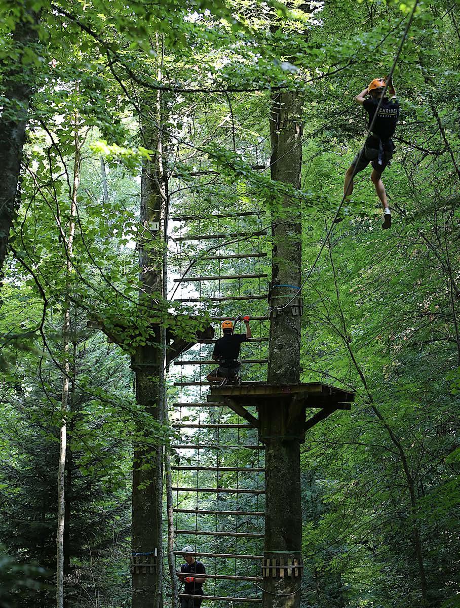 Noch einmal Teamwork, noch einmal Freude, noch einmal Nervenkitzel: Der letzte Tag des Basic Camps gehörte dem Entdecken, Klettern, Hindernisüberwinden, Seilrutschen und Vertrauenfassen.