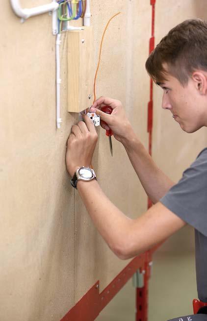 Muss ein Kabel verlegt werden, braucht es dazu einen Plan. Wie sonst weiss man, was wohin kommen soll? So galt es im Theorieunterricht zu verstehen, warum, wie und wo Strom fliessen kann. Mit Geodreieck, Lineal und Stift mussten die ersten Aufgaben aufgezeichnet werden. Das war nur der Anfang. Denn künftig sollen die Lernenden in der sogenannten Lerndokumentation genau dies tun, wenn sie einen Auftrag fassen: zuerst einen Plan erstellen, daraus ein Dispositiv ableiten und erst dann das Werkzeug fassen und den Auftrag ausführen. Der Unterricht bei Thomas Krummenacher machte Spass, liess aber immer wieder fragende Gesichter in die Runde blicken. Oft haben dabei die Jungen die Antwort selber erarbeitet, zusammen mit den Kolleginnen und Kollegen. Weitere Fachleute bereicherten den Theorieunterricht mit Wissenswertem über die Sozial- und die Finanzkompetenz, das Arbeiten im Team sowie über die Arbeitssicherheit: Wie trete ich auf, wenn ich auf eine Baustelle komme? Wie schaffe ich es, dass von meinem Lohn Ende des Monats noch etwas bleibt? Welche Kleidung schützt mich vor Gefahren?