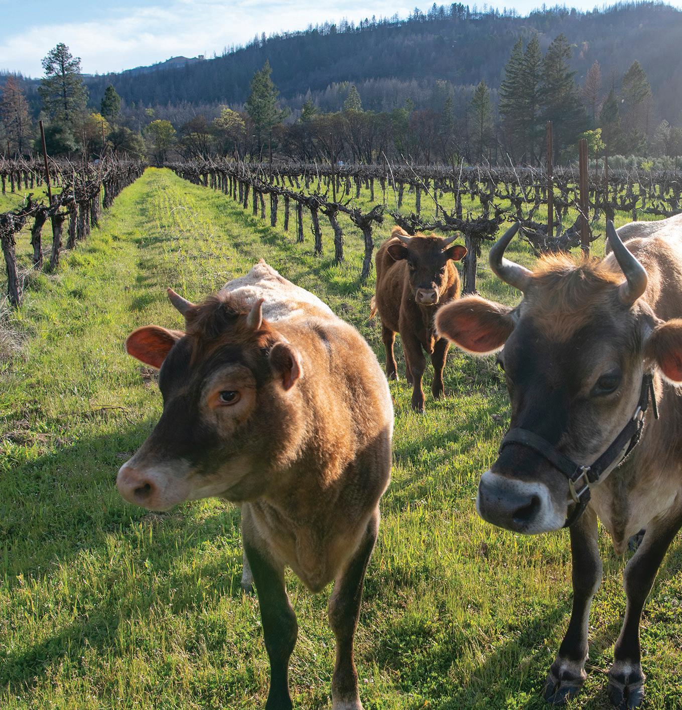 Our Biodynamic program includes caring for our farm animals. Cows, goats, sheep, and chickens are an integral part of our holistic land management.