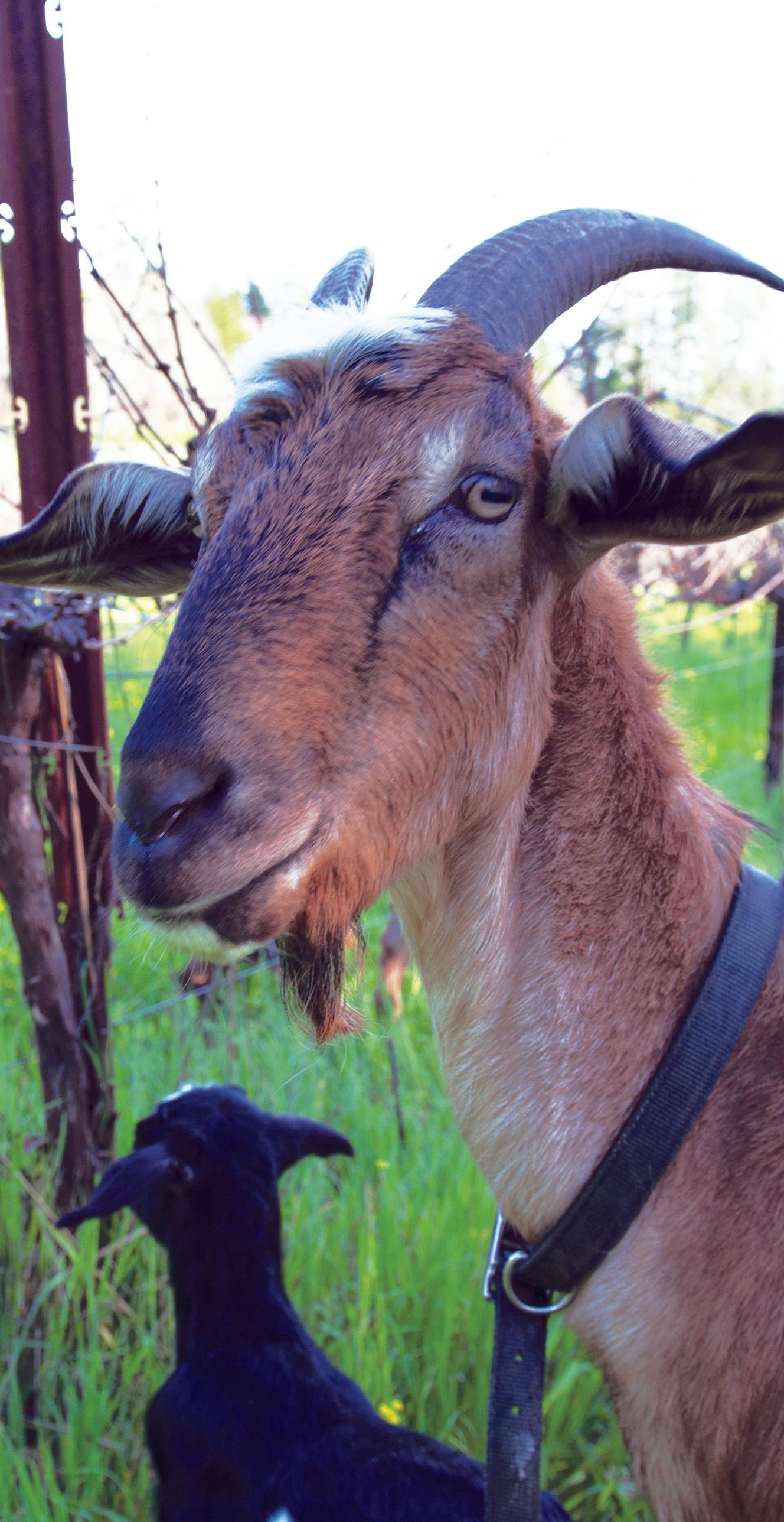 Our animals graze in between vineyard rows on Biodynamic cover crops. Instead of always leaving animals in the same place, we rotate them through different zones. This maximizes natural cycles of grazing while minimizing impact. We’re always looking at ways to create as synergistic an experience for the land and animals as possible. The goat herd will happily eat the wild greens and blackberry vines well into the fall when acorns become available. After the grapes are harvested, the goats will return to the vineyards where they enjoy grape “seconds.”