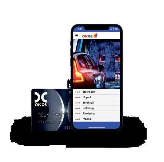 Du registrerar bara ditt företagskort till vårt tvättabonnemang i appen OKQ8, sen är det bara att tuta och tvätta.