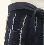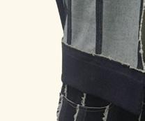J’utilise des surplus de denim pour fabriquer un grand tissu, puis je conçois une veste et un pantalon ajustable.