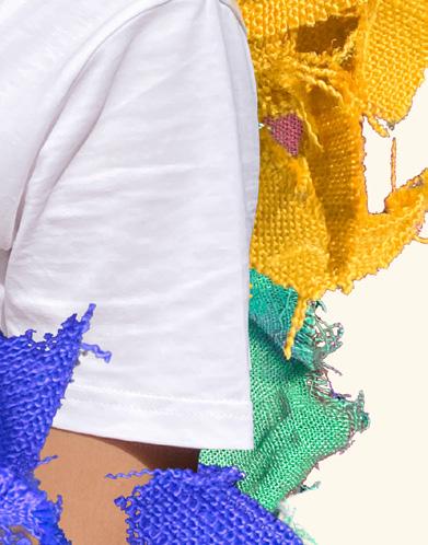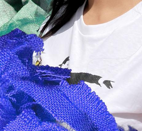Dans ma pratique, j’aime jouer avec la tridimensionnalité des matériaux sur le corps et expérimenter des techniques qui amènent le textile vers l’éco-durabilité.