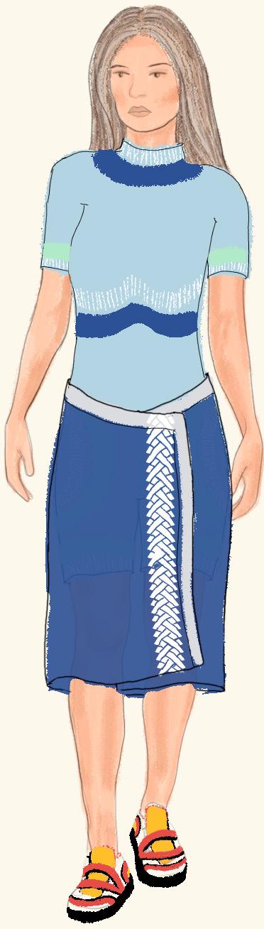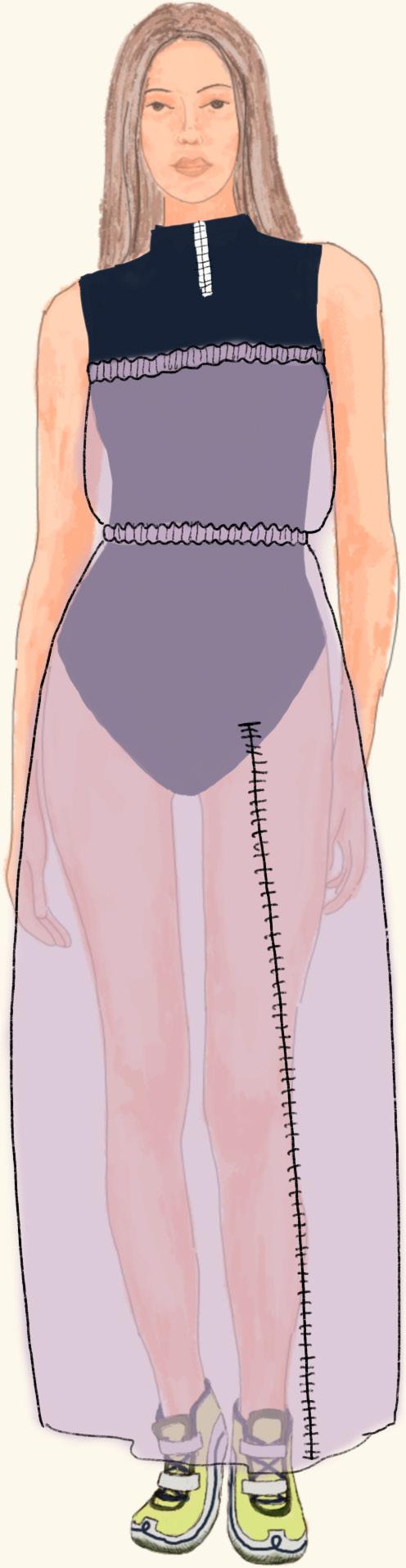 Sur les silhouettes, je travaille principalement avec la figure du sablier. En jouant avec la silhouette de la femme, je crée des vêtements de sport qui sont utilisés pour les sports mentionnés précédemment et adaptés aux besoins de l’utilisateur.