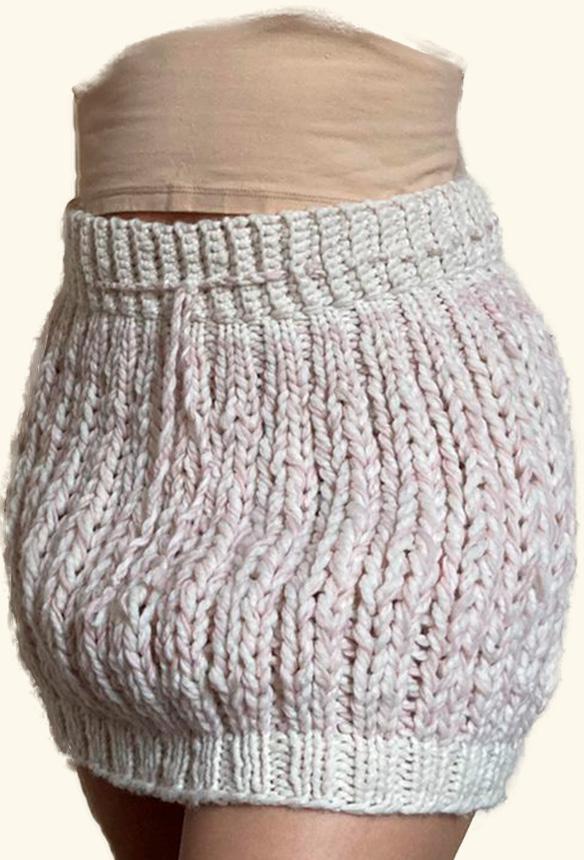 bicolore avec des points d’ouvertures différentes. Tricotage avec des bâtons et crochet.