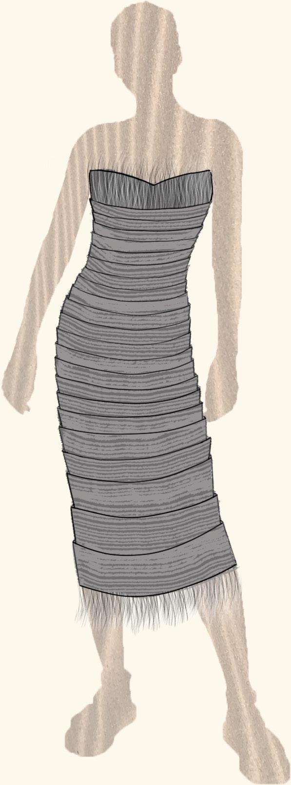 Robe semi-transparente à effet dévoré. Inspirée de la morphologie du chien.