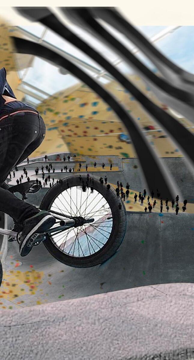 Cette ligne de design est inspirée de l’environnement des sports extrêmes urbains tels que le bmx, l’escalade et le parkour.