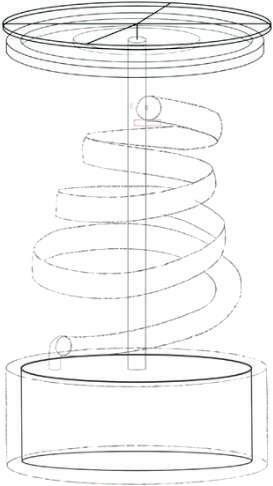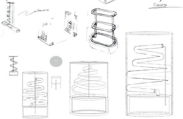 The water with the solution passes through the main support of the design, traveling from the container to highest tube to then travel to the spiral PVC tube and finally return to the container again