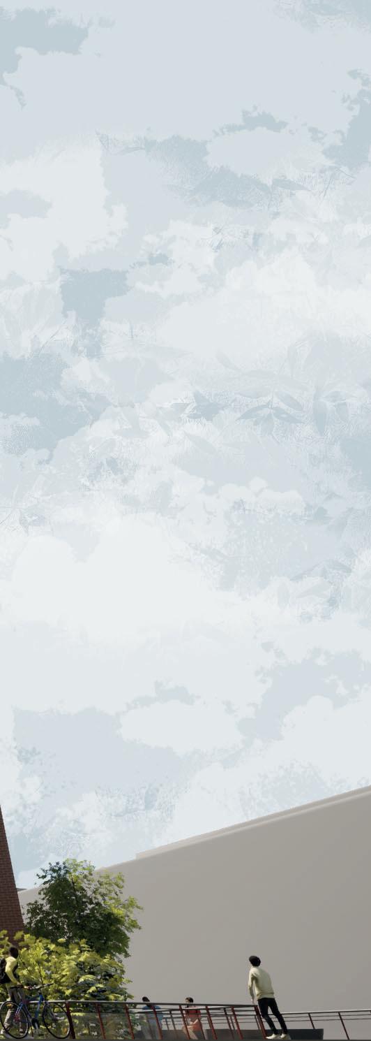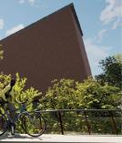 Para este trabajo se pensó en una materialidad de ladrillo y cristal con acero rojo.