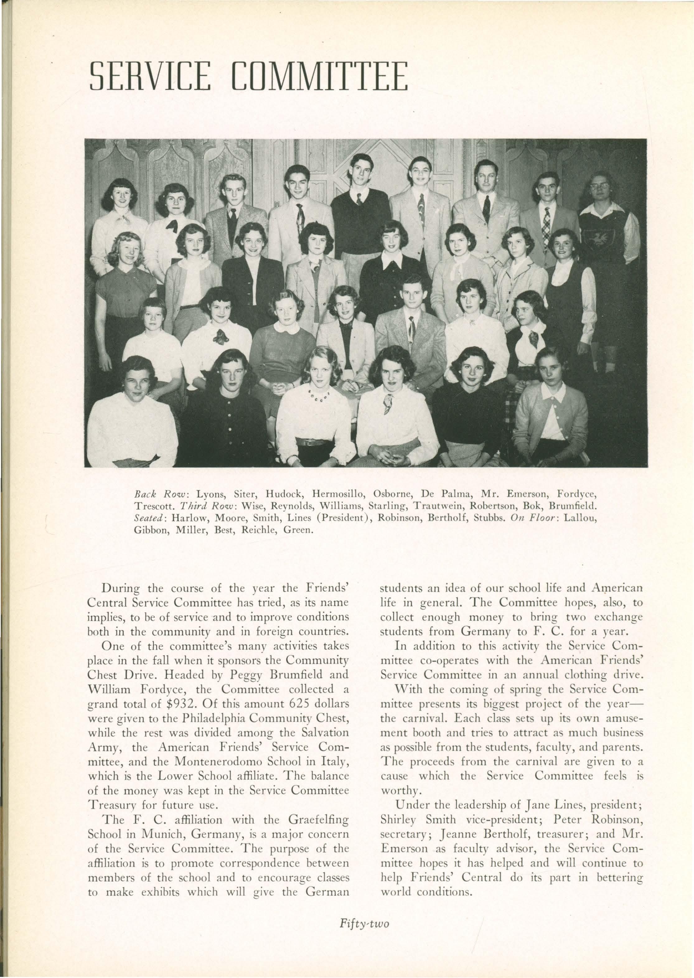 PERHAPS, AS WE ENTER LIFE'S PORTALS, THESE SYMBOLS WILL BRING TO OUR MINDS THE FIRM FOUNDATION WE RECEIVED AT FRIENDS' CENTRAL. WE HOPE THAT WE SHALL CO 1TRIBUTE OUR SHARE TOWARDS MAKING THIS WORLD A BETTER PLACE IN WHICH TO LIVE.