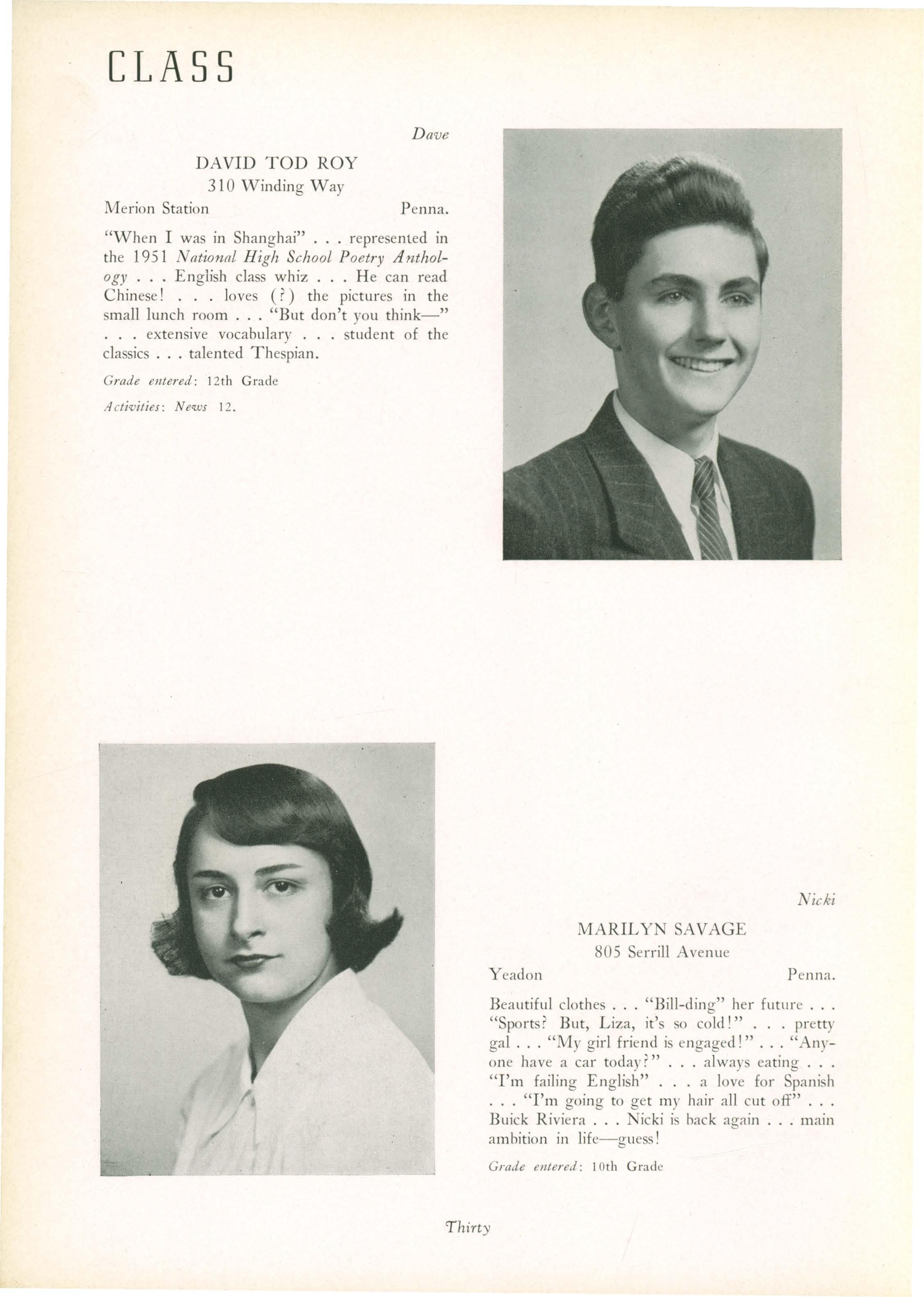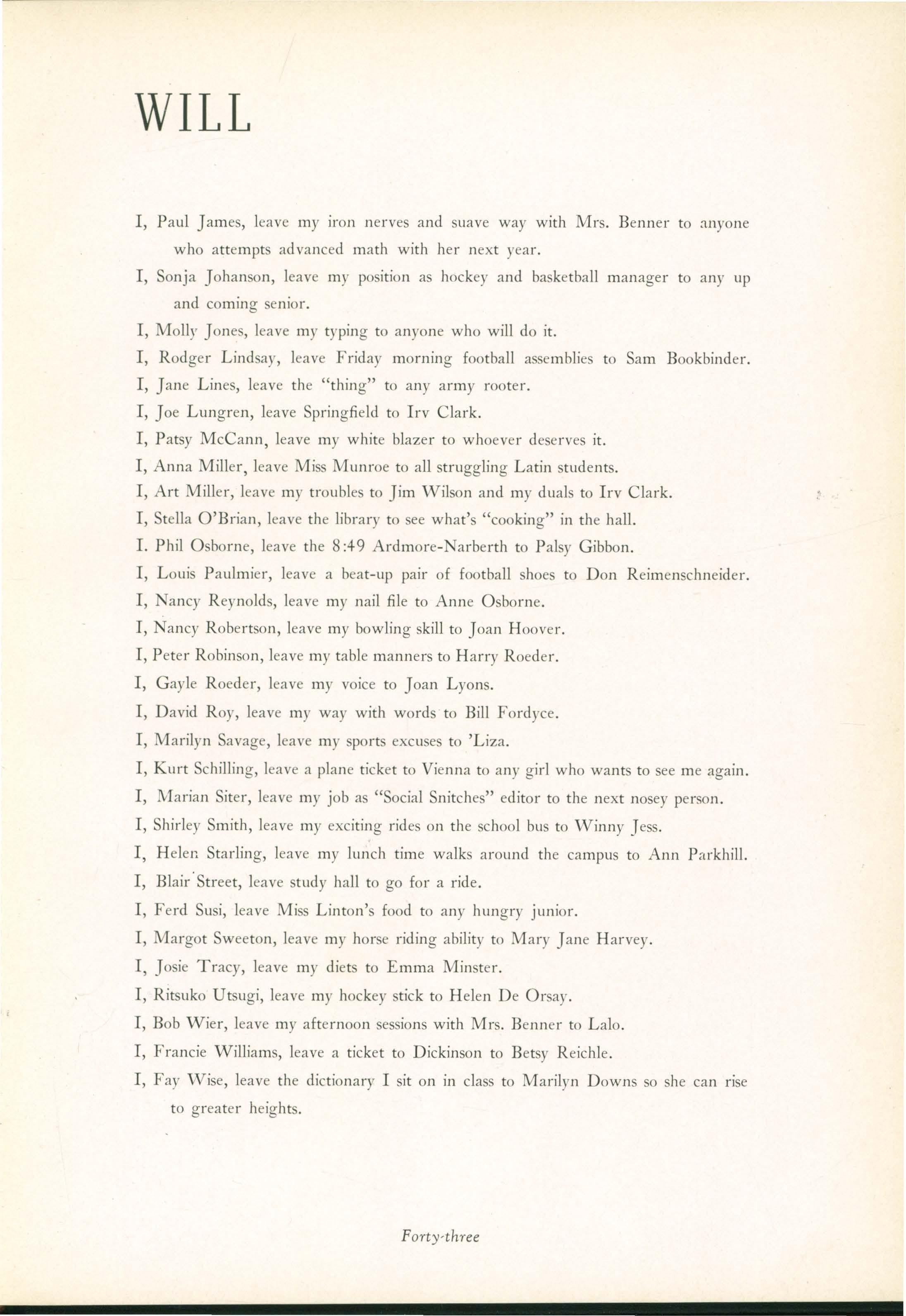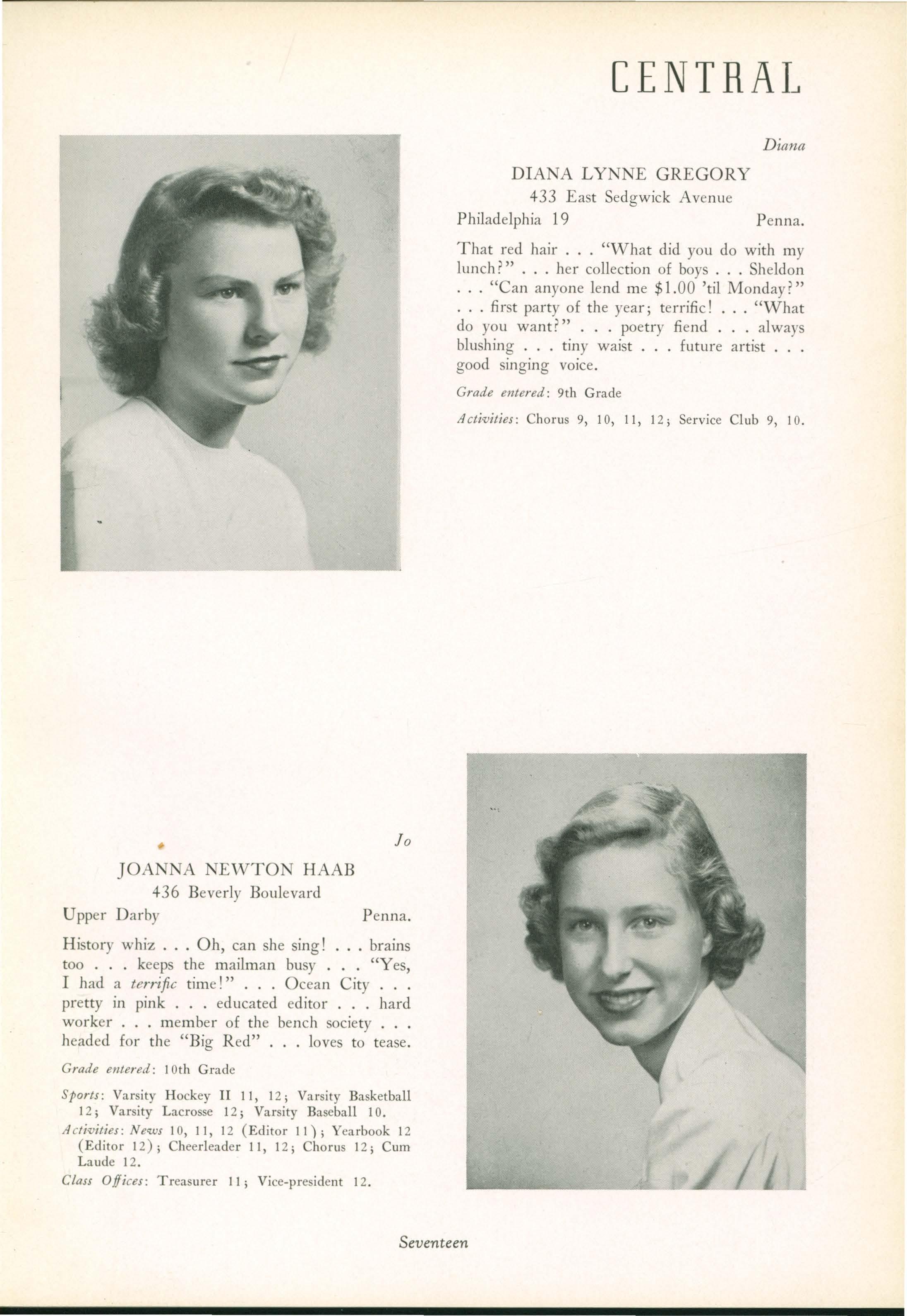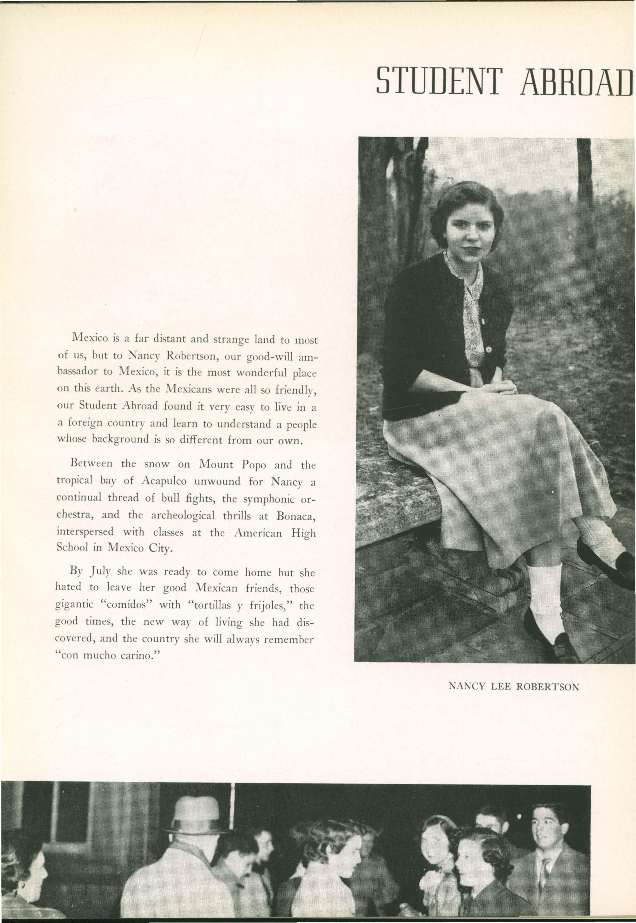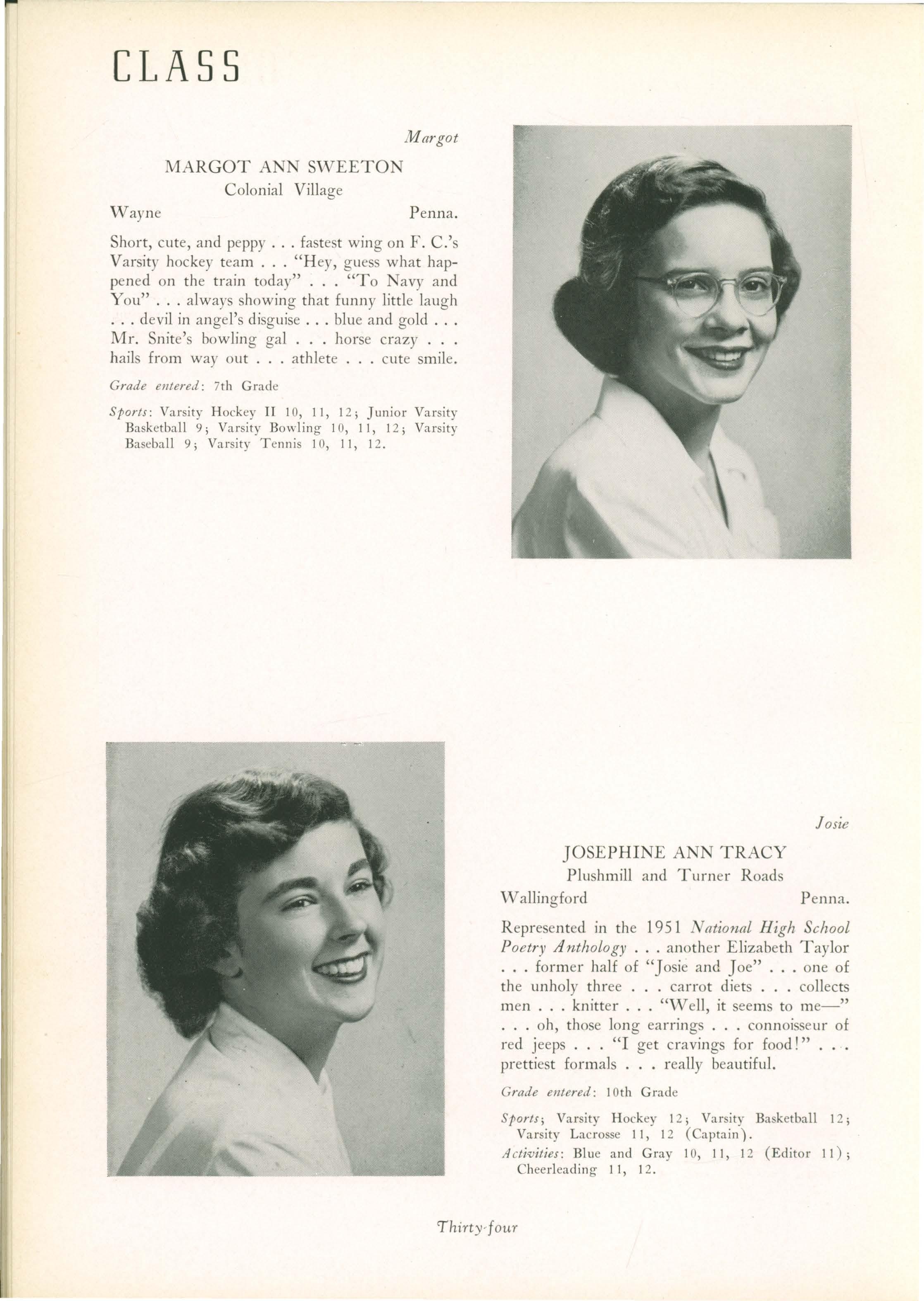she speaks French I female scientist th e onl y on e on th e Servi ce Committ ee wh o ca n a dd - tr eas ur e r ... she's a lw ays th er e when yo u n ee d h er plays th e piano wonderfully "Guess what! I'm go in g to th e farm this weekend! " . .. c ut es t twinkl e in he r eye .. . hard worker "A heavy hitt e r in th e bac kfi eld- " "Have a ll th e committees fo r th e Senior Prom m et? "