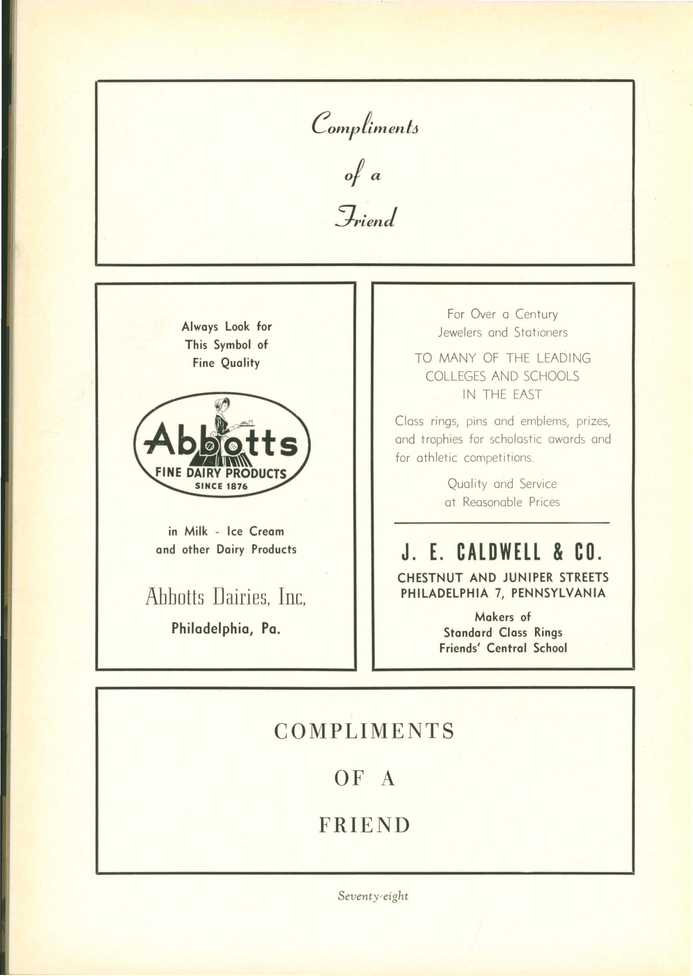 SOME OF US MAY BECOME KINGS Al\:D OTHERS MERELY THE PAWNS, BUT IN THE YEARS TO COME, AS WE GLANCE THROUGH THIS BOOK, WE HOPE THAT WE MAY BE UNITED IN RECALLING THE SPLENDID DAYS WE HAD AT FRIENDS' CENTRAL.