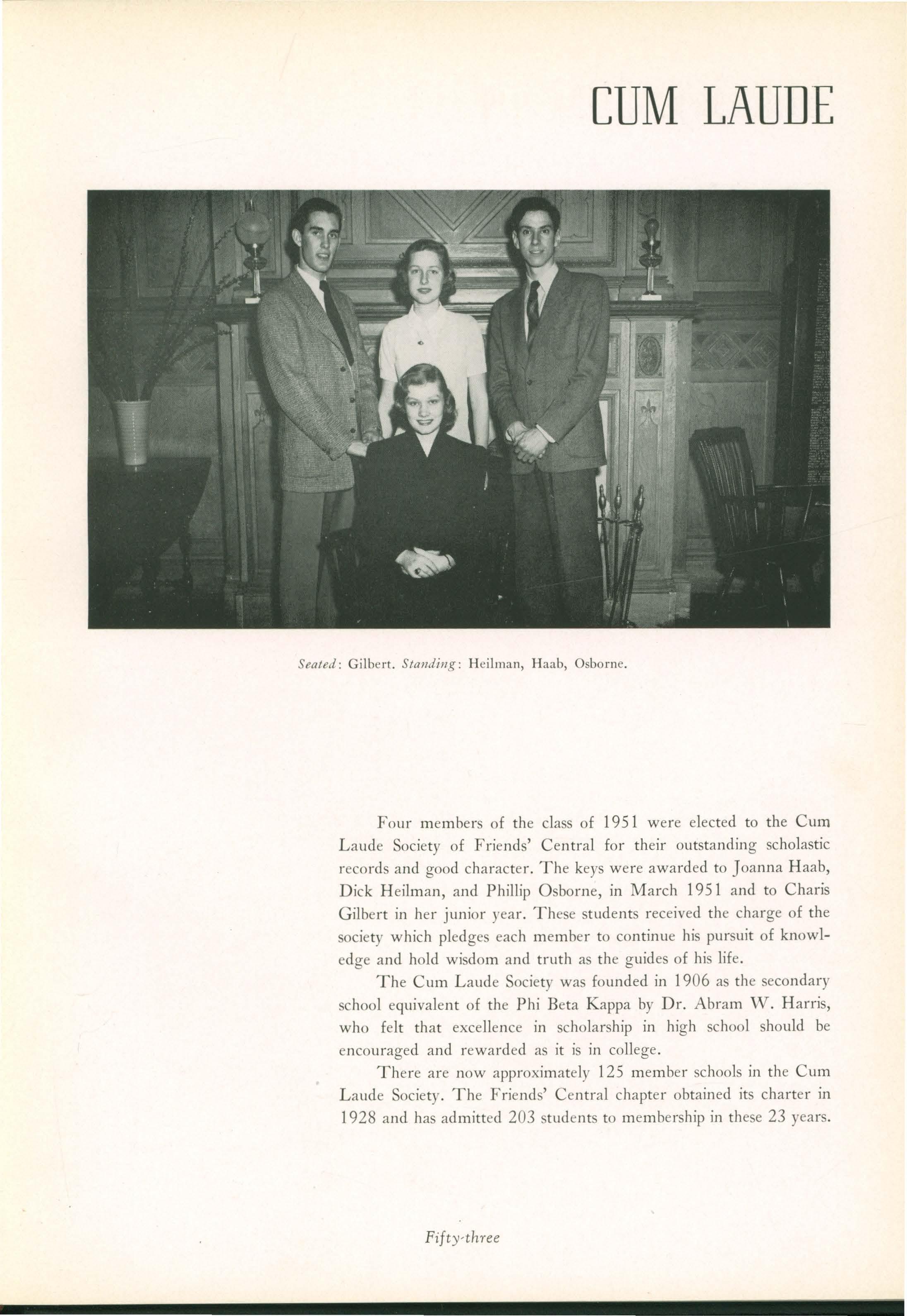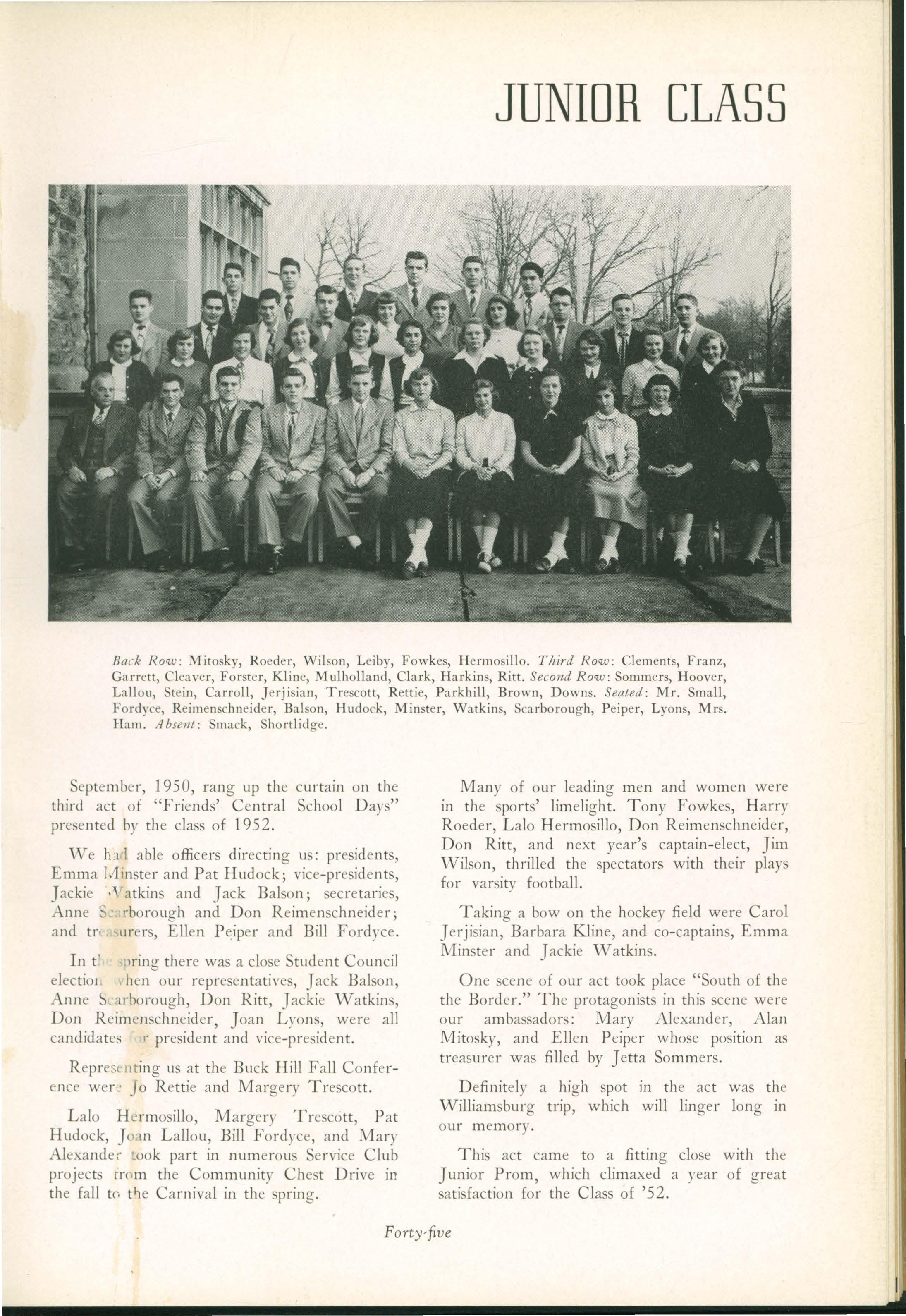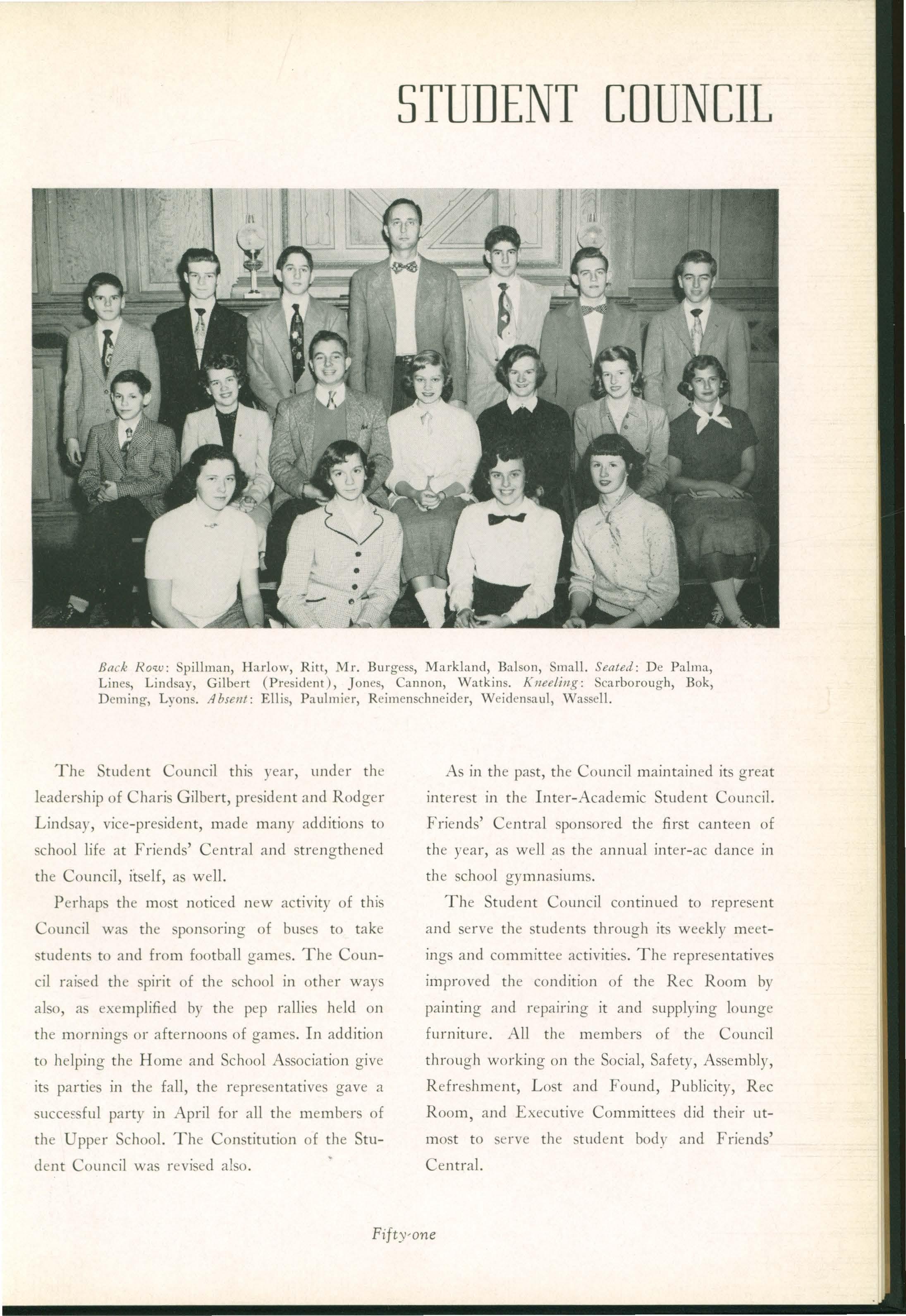 F ri e n ds' C e ntr al V a r sity tea m s by or in h e r junio r yea r , a n d mu st have sh ow n o ut sta n d in g sc hoo l spirit, spo rt sm a n s hi p, a nd citi ze n shi p Th e