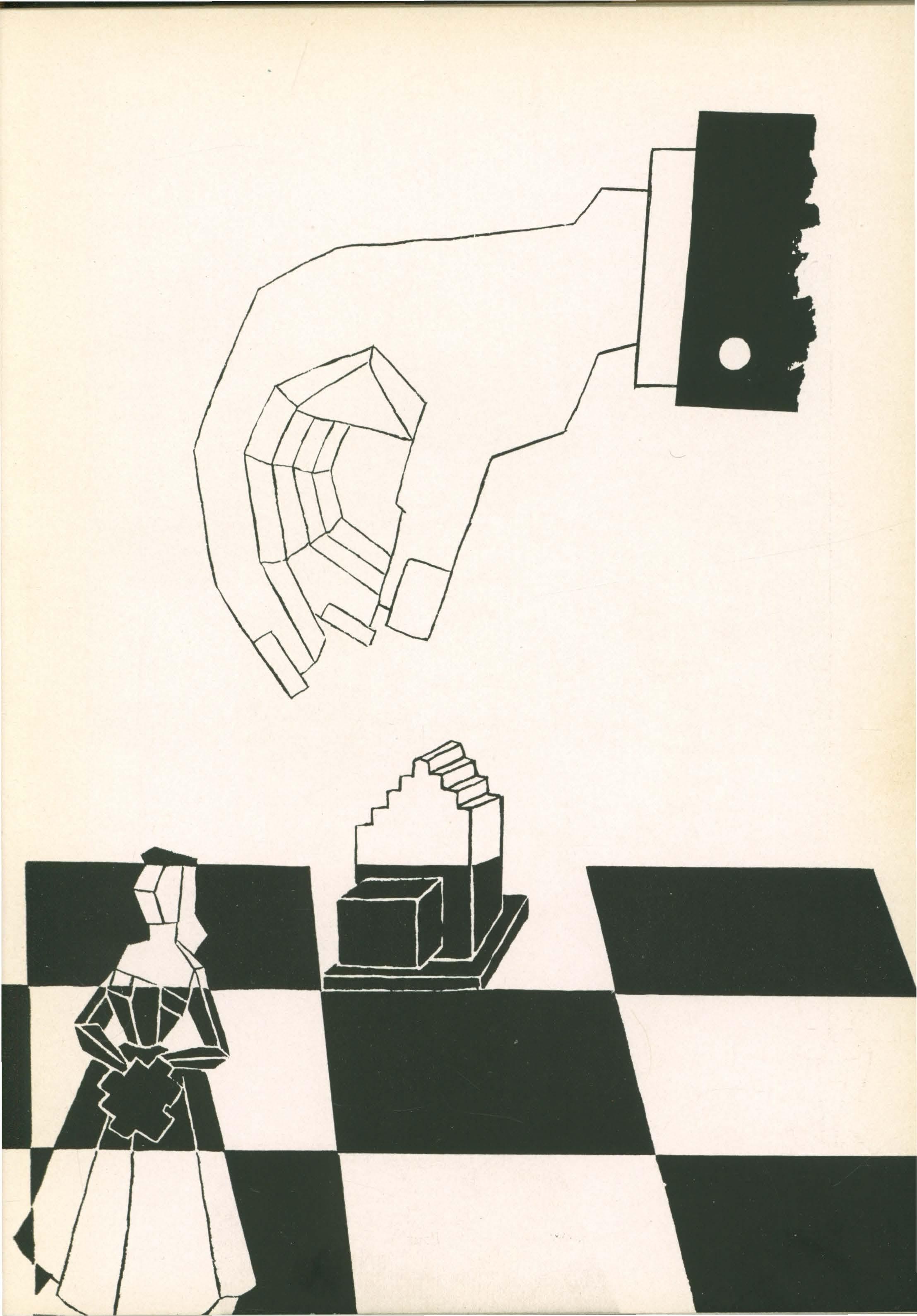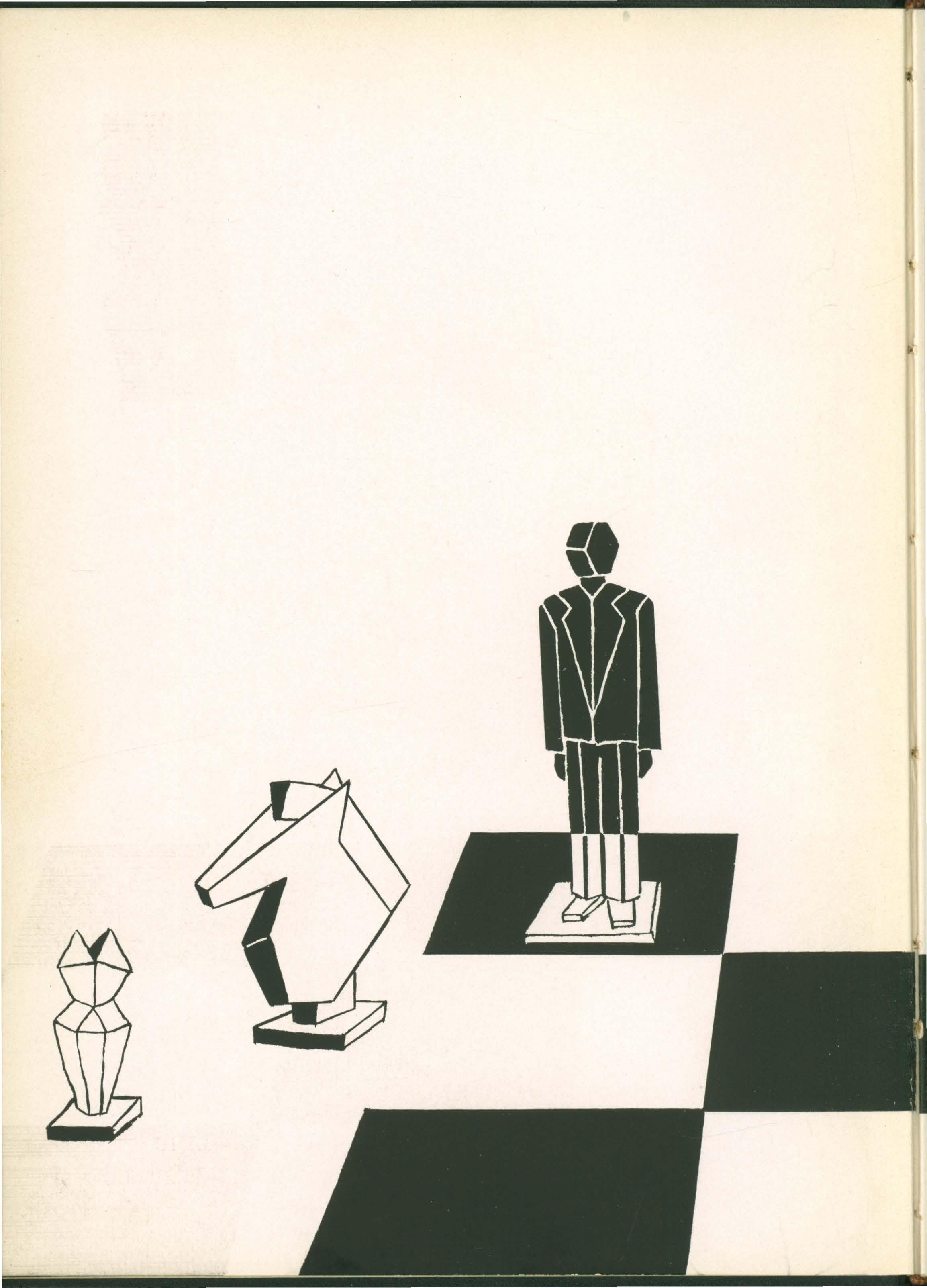A!\D PAWNS OF THE GAME OF CHESS. ACCORDING TO TRADITION, CHESS WAS INVENTED "TO DIVERT MEN FROM THE ATTRACTIONS OF ACTUAL WARFARE." ALTHOUGH THIS SYMBOL OF THE GAME OF CHESS MAY SEEM TRIVIAL, IT ACTUALLY POSSESSES GREAT SIG ' !FICA ' CE TO ALL STUDENTS WHO HAVE ATTENDED A FRIENDS' SCHOOL WHERE THE DOCTRINE OF PEACE IS INSTILLED.