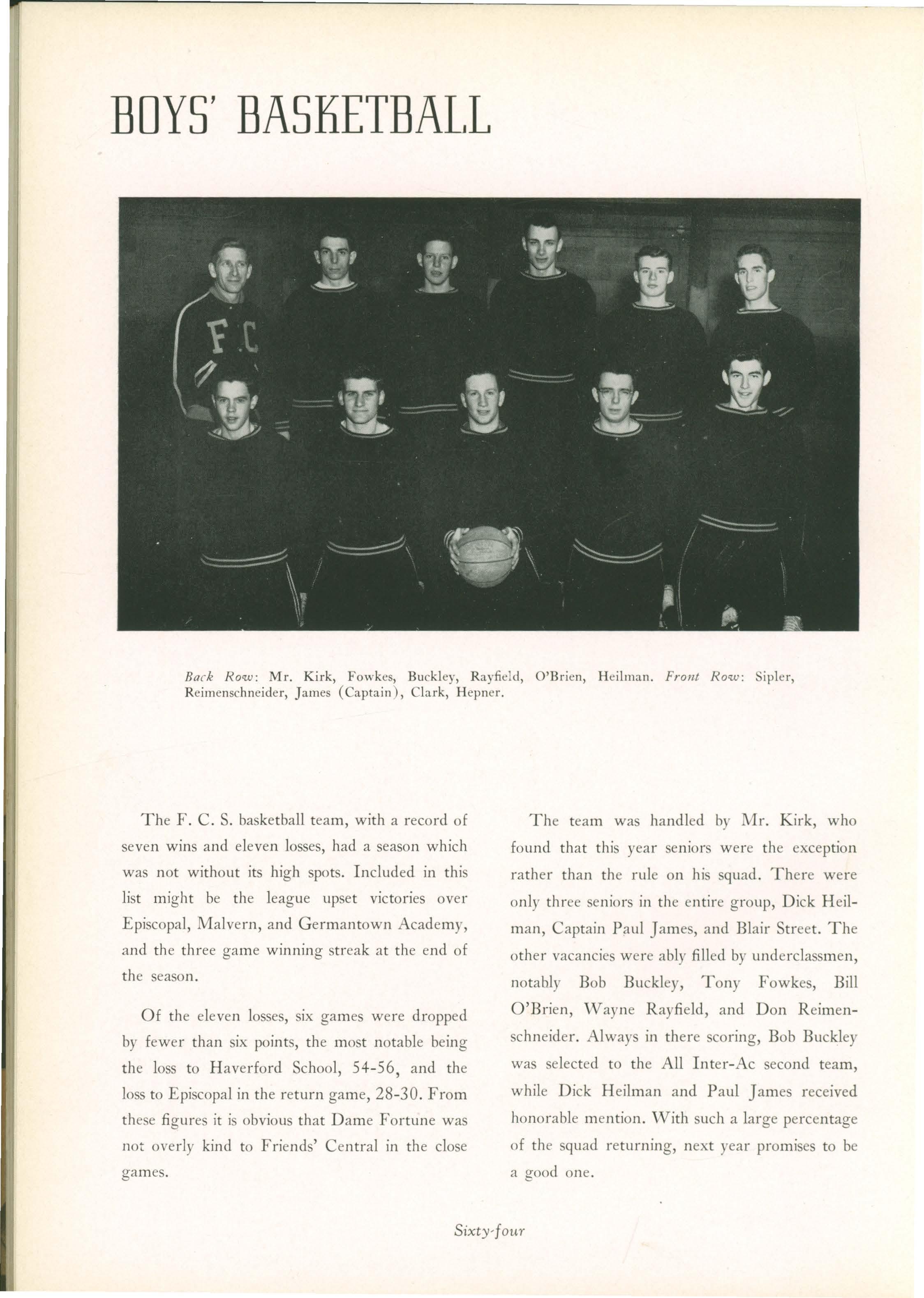 1950 Va rsity w h o ha d d ow n ed Fr ie nd s Se lec t