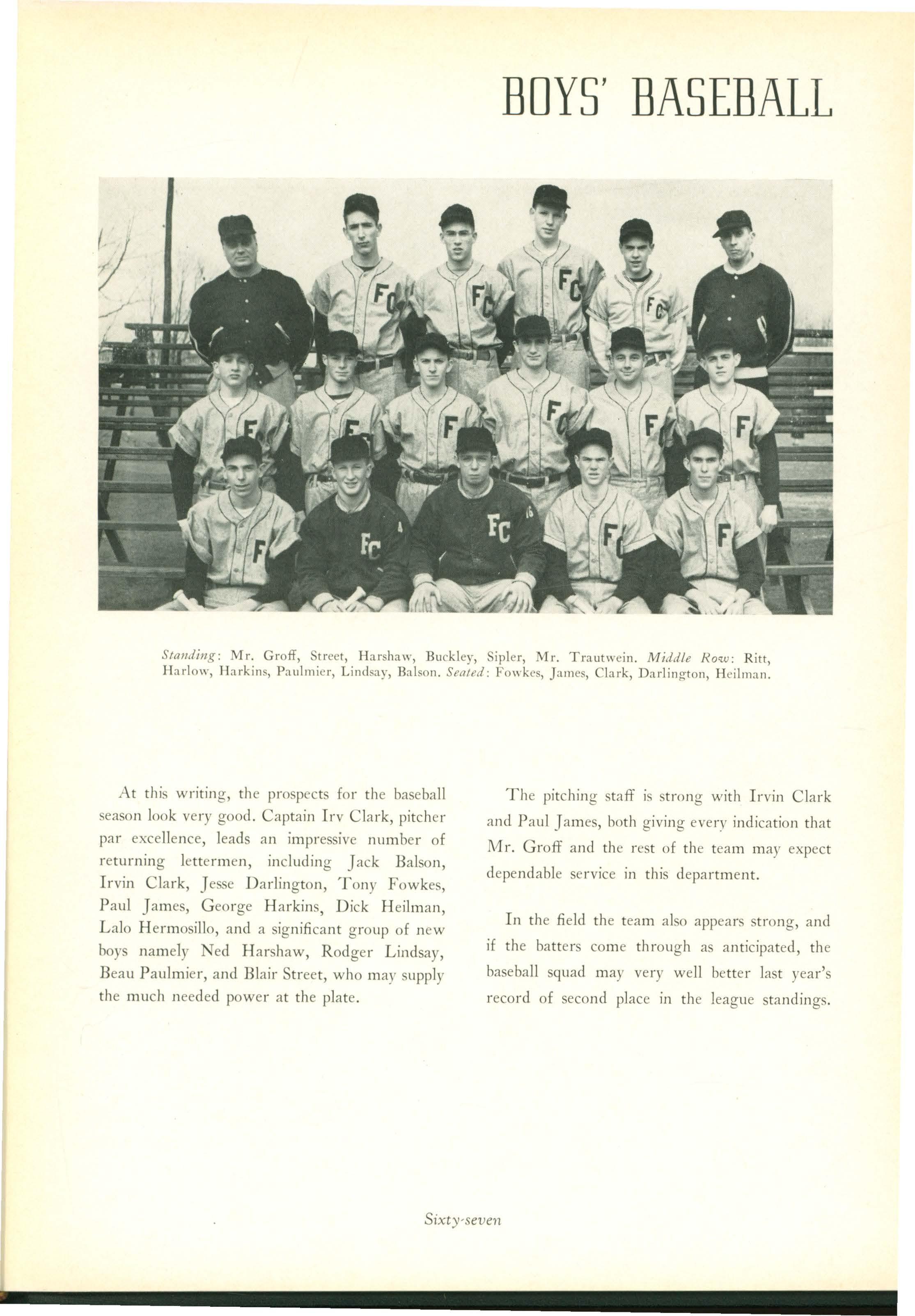 P a ul J a m es, G eo r ge H a rkin s , D ic k H e ilm a n, L a lo H e rm osill o , a nd a sig nific a nt g r o up o f n e w boys n a mel y ed H a r sha w, R o d ge r Linds ay, B ea u P a ulmi e r, a nd Bl a ir Str ee t , wh o m ay s uppl y th e mu c h n ee d ed po w e r a t th e pl a t e .