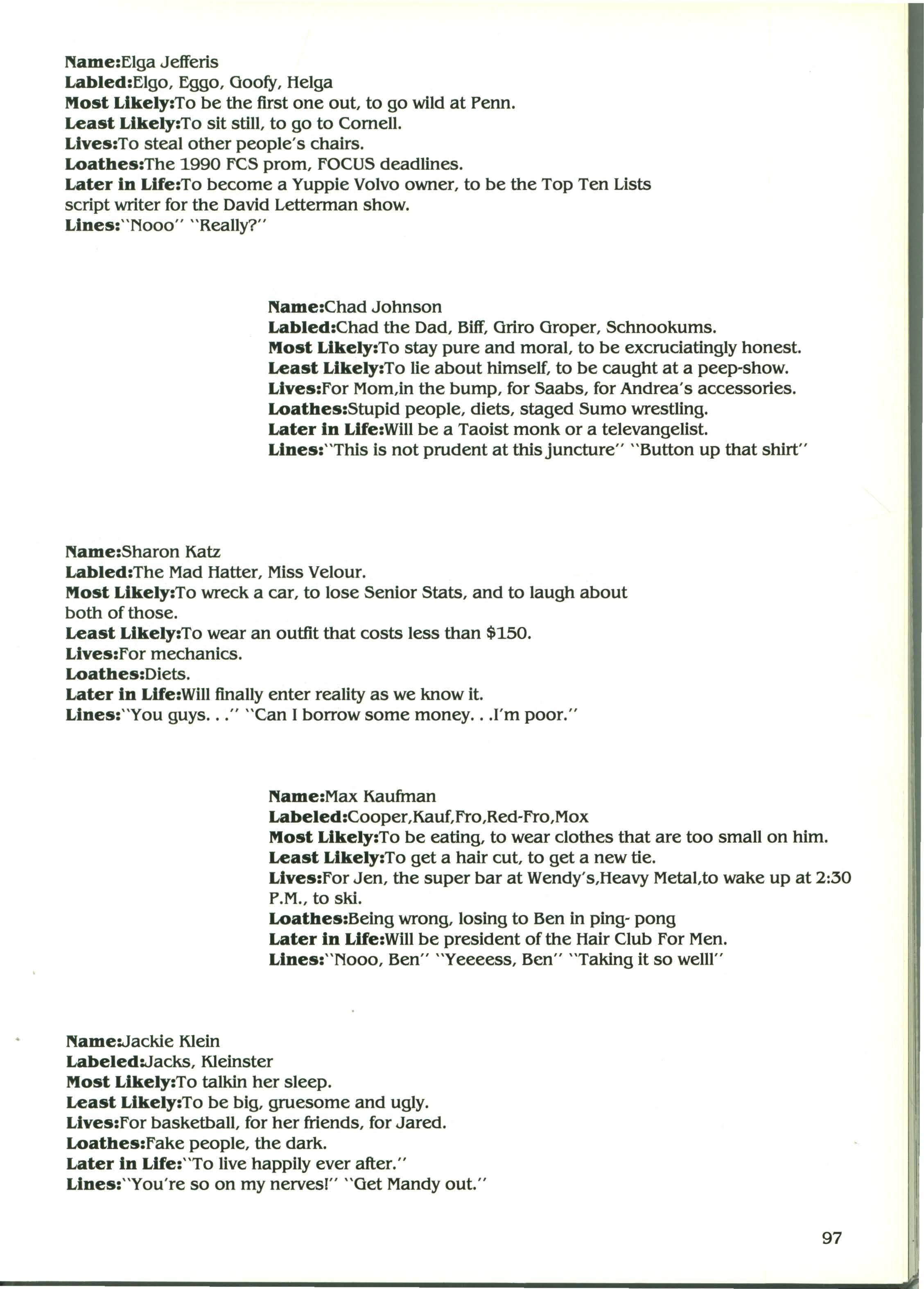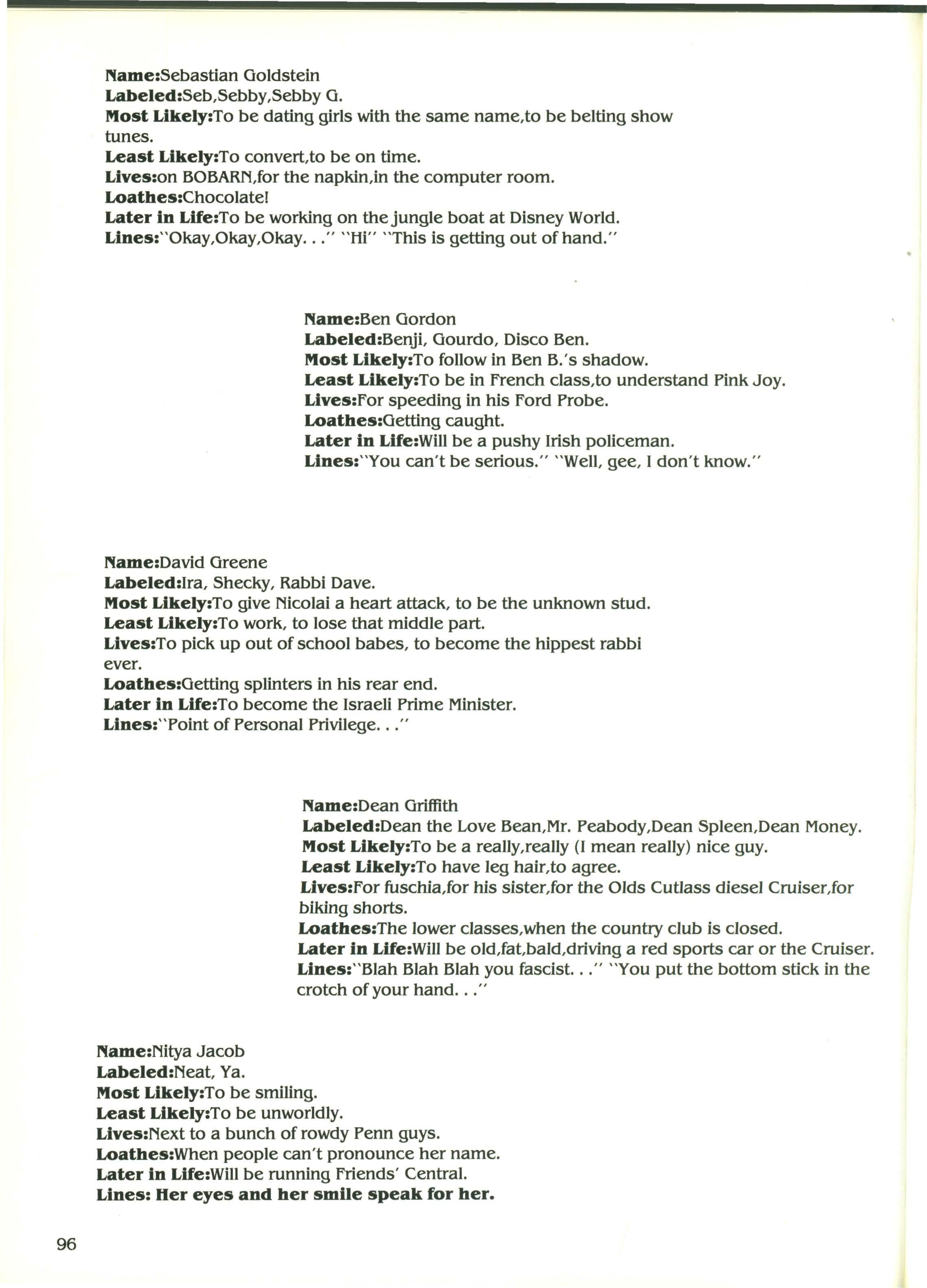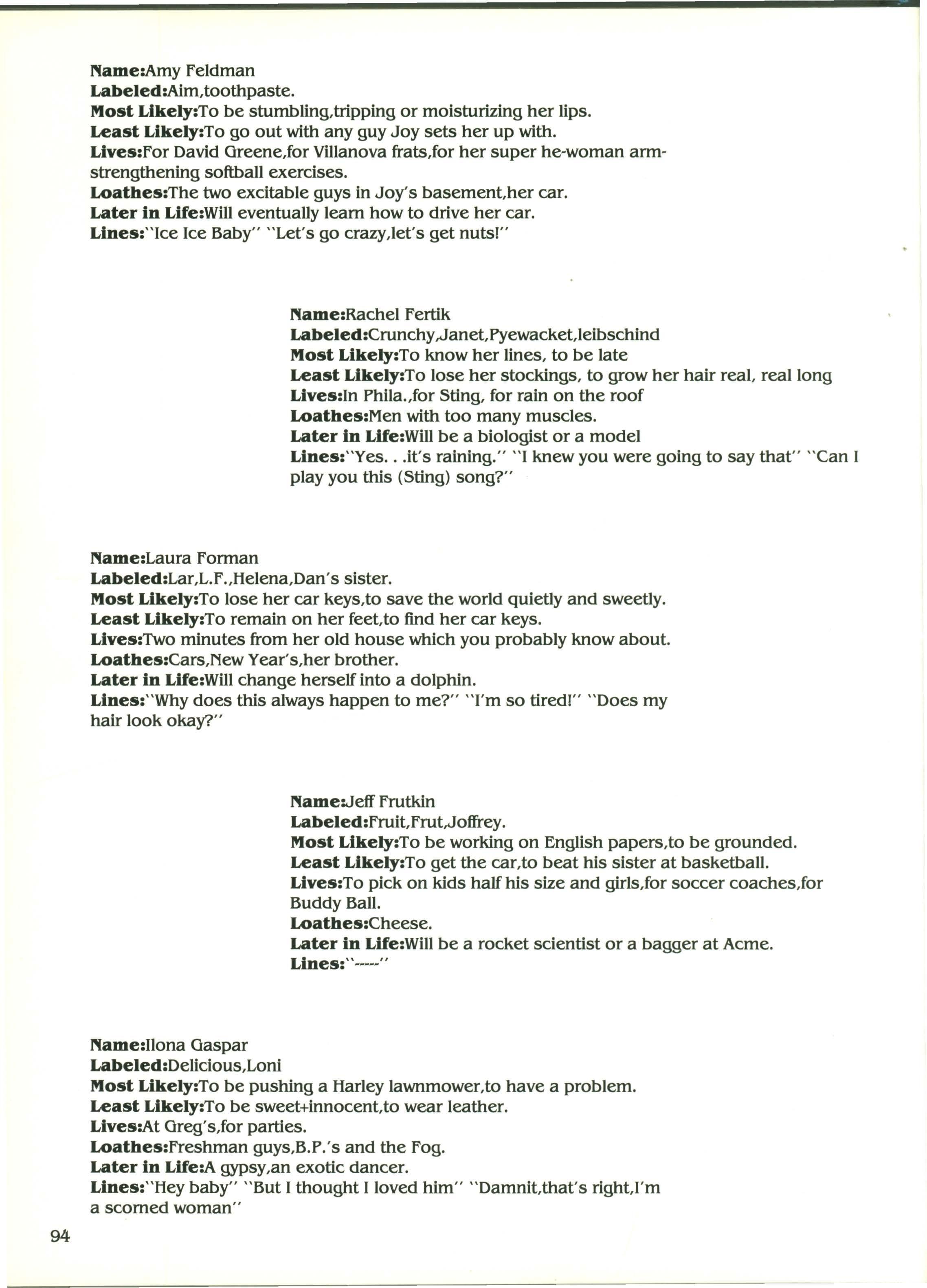Back Row:Mike Levin,Josh Horowitz, Christine Ake,Becky Carr,Lauren Schwartz,Kathe Spiro,Joe Neary. Middle Row: Becky Farber,Staci Goldstein,Alison Lazarus,Jocelyn Patterson,Lori Spector