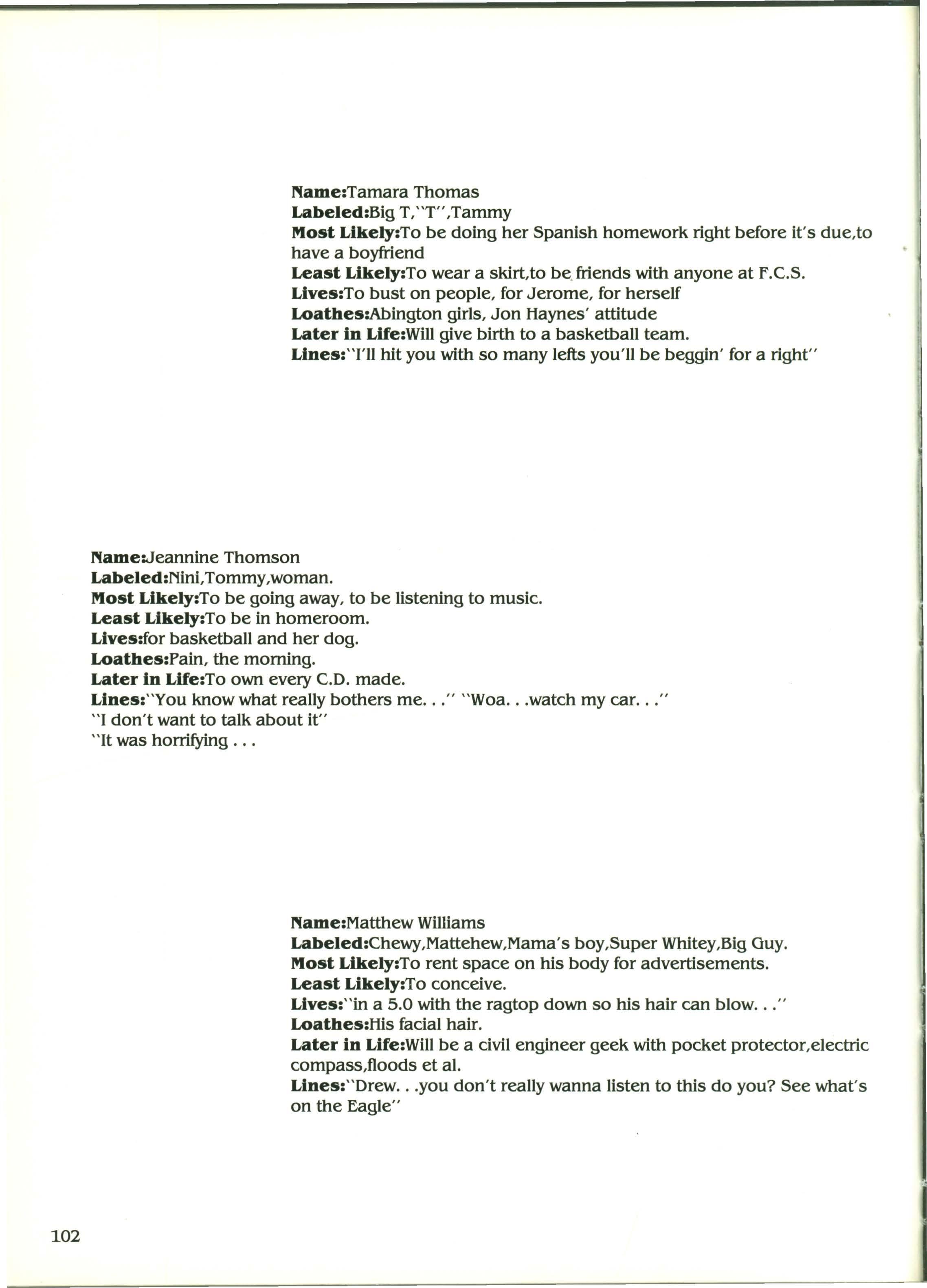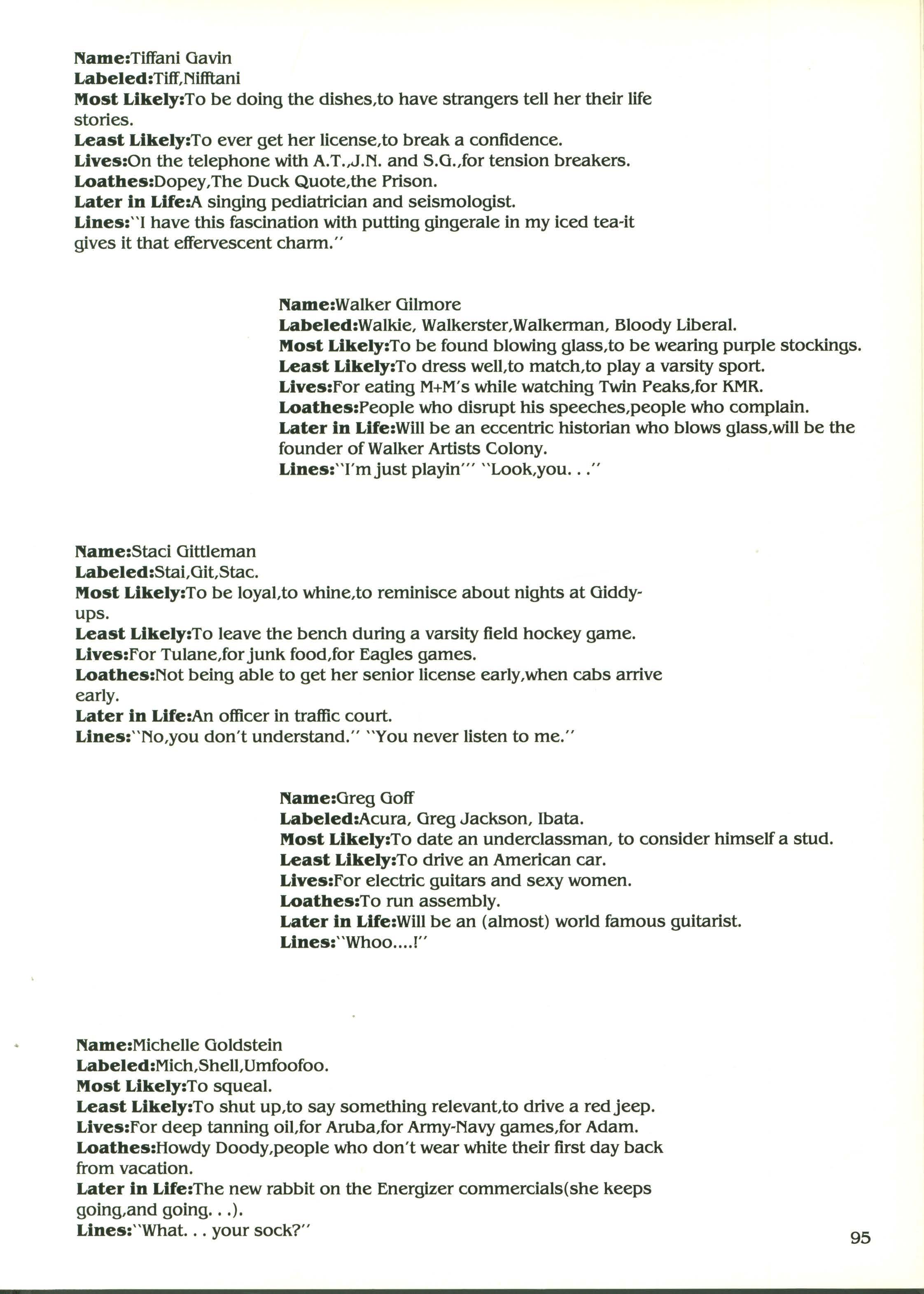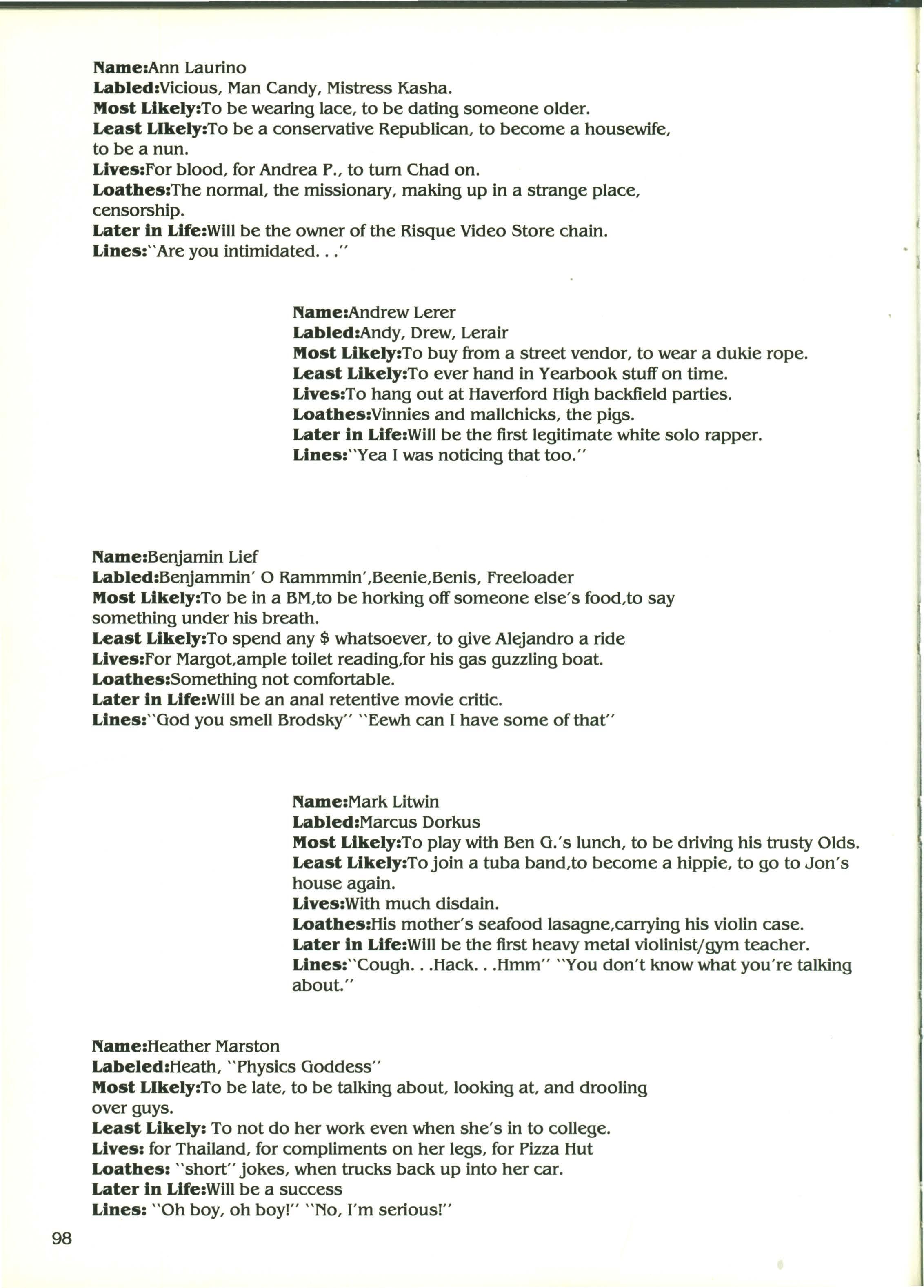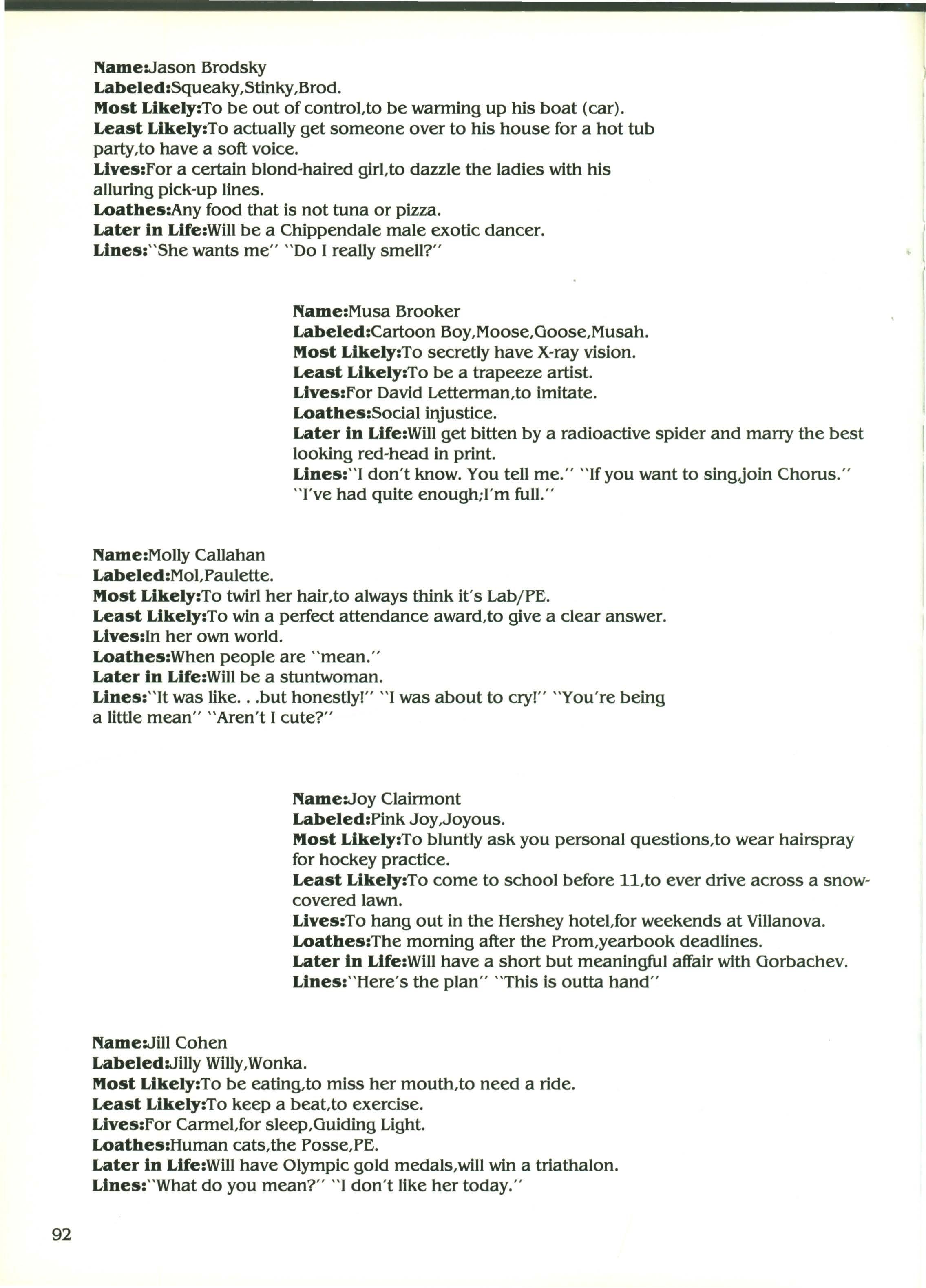 Back Row:Mike Levin,Josh Horowitz, Christine Ake,Becky Carr,Lauren Schwartz,Kathe Spiro,Joe Neary. Middle Row: Becky Farber,Staci Goldstein,Alison Lazarus,Jocelyn Patterson,Lori Spector