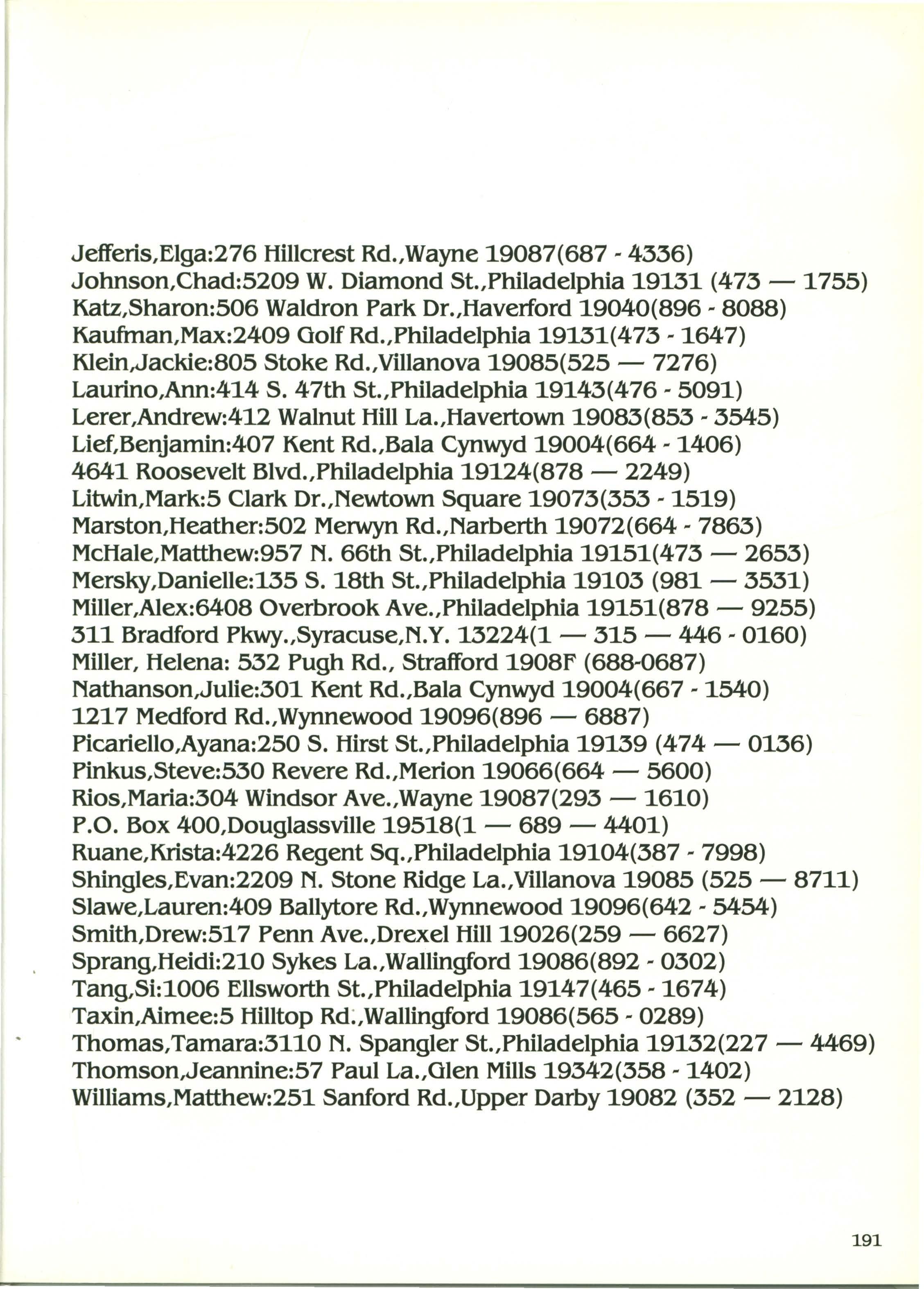 Katz,Sharon:506 Waldron Park Dr.,Haverford 19040(896 • 8088)