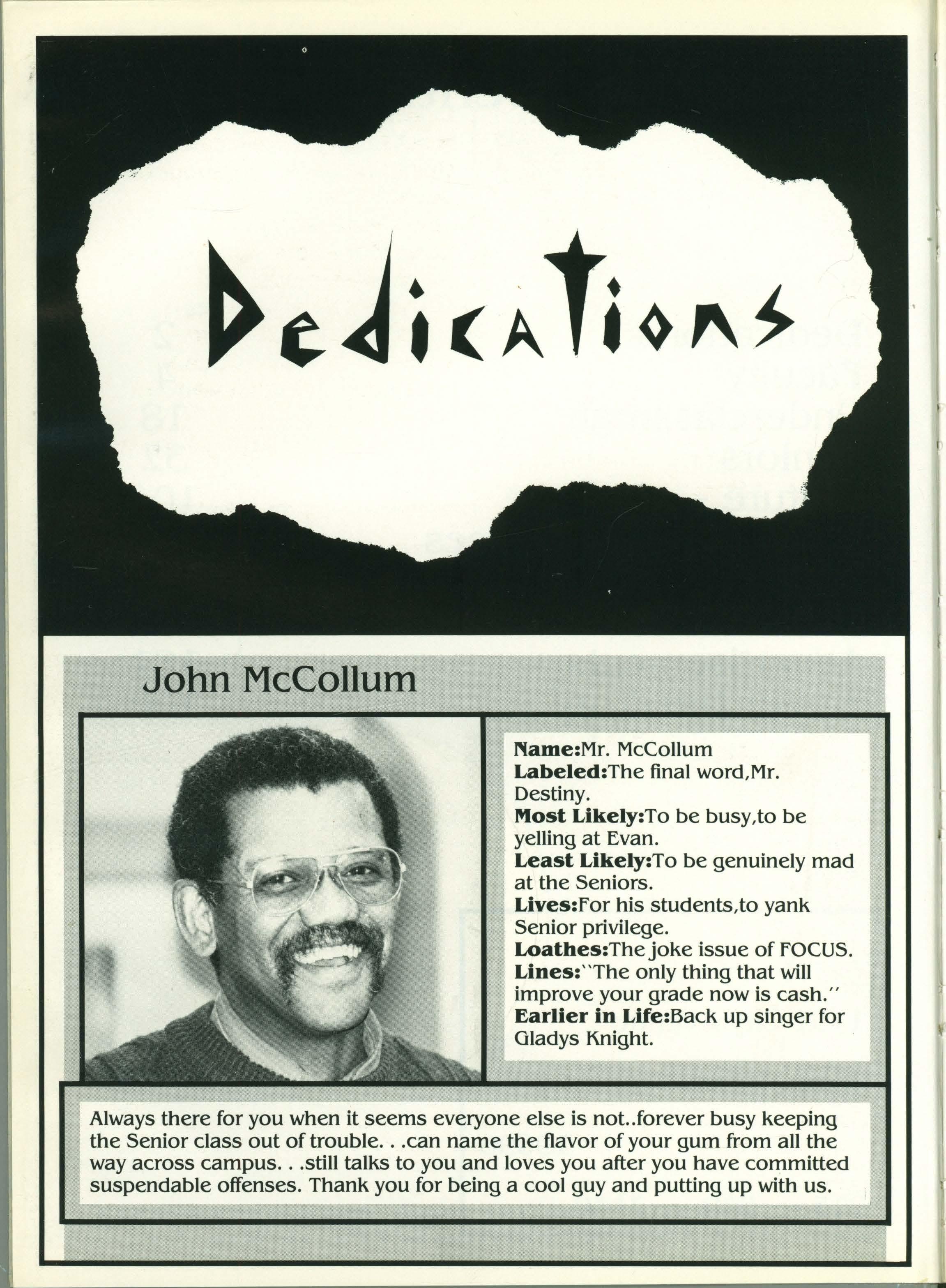 Always there for you when it seems everyone else is not. .forever busy keeping the Senior class out of trouble can name the flavor of your gum from all the way across campus still talks to you and loves you after you have committed suspendable offenses. Thank you for being a cool guy and putting up with us.