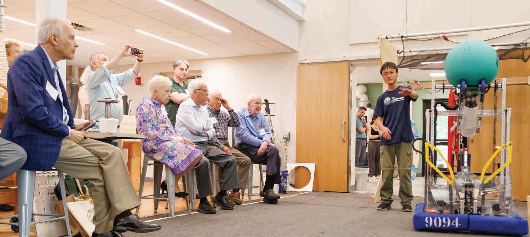 6. Andrew Yu '25, a member of the award-winning FCS Earthquakers Robotics team, gave alums a demonstration of the FCS robot in action.