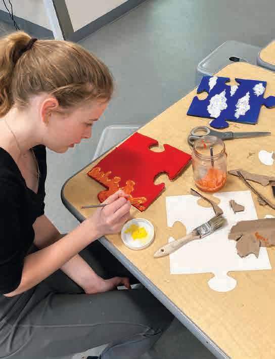 3. In March, students in Kirk German’s Props & Costumes Service, working in the CID, designed and made puzzle pieces for the play Puzzled performed at the Middle School’s 2025 Playwrights in Progress.