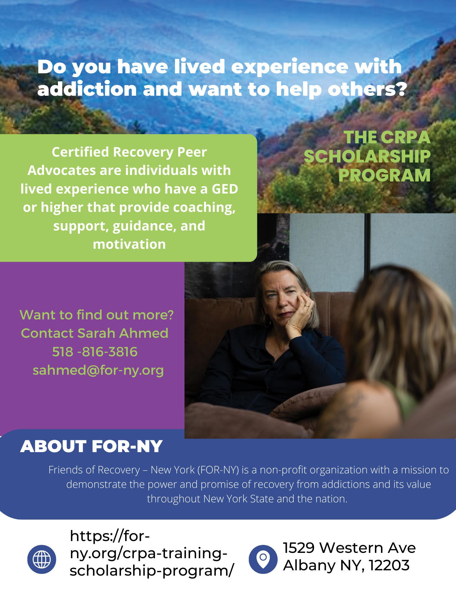 If your organization is able to supervise an intern who completed the CRPA training scholarship program, please contact tknorr@for-ny.org ($1200 stipend for supervision). CRPA training scholarship application: http://app.donorview.com/r3n0M Coming soon: 500 hour paid CRPA internship stipend!