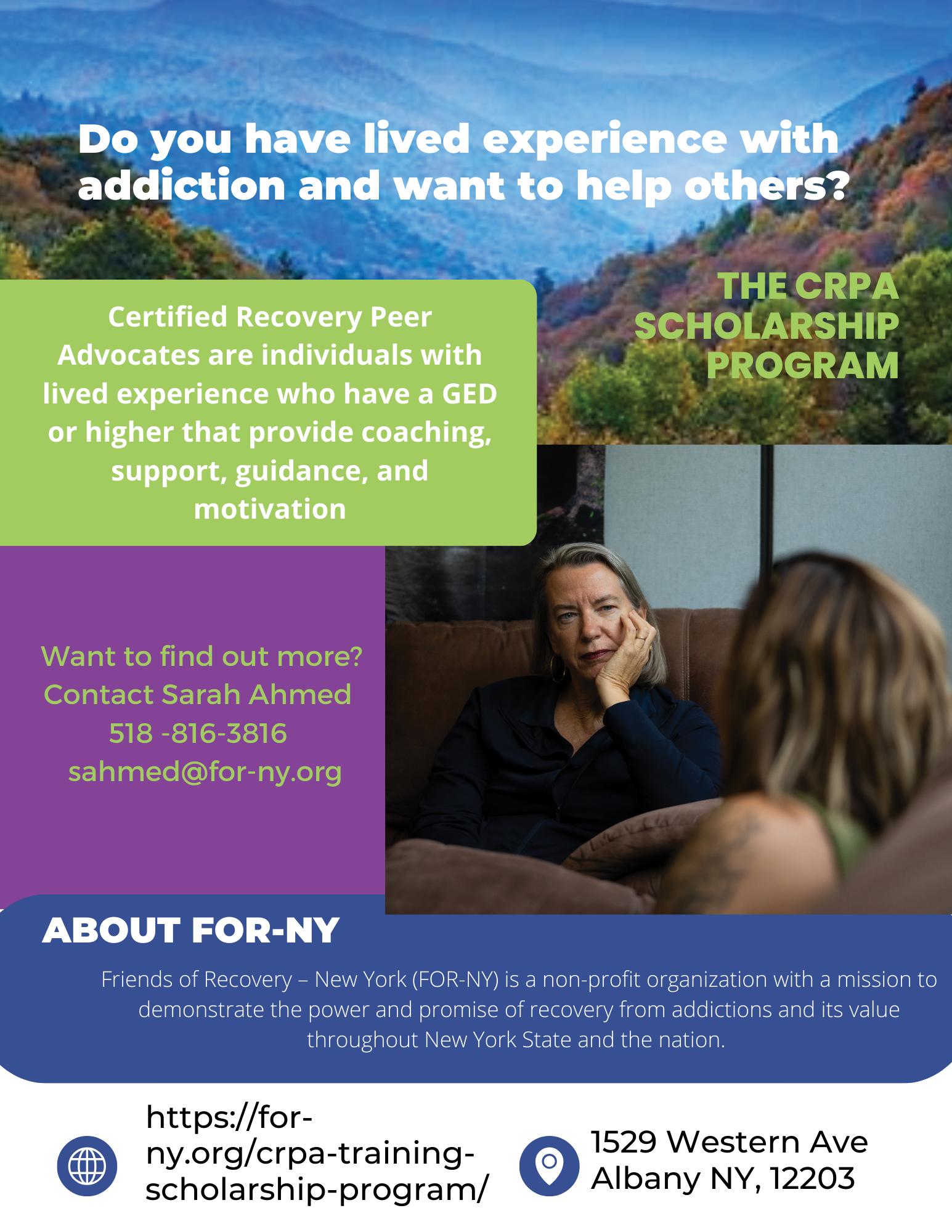 SUPERVISORS NEEDED: If your organization is able to supervise an intern who completed the CRPA training scholarship program, please contact tknorr@for- ny.org ($1200 stipend for supervision)