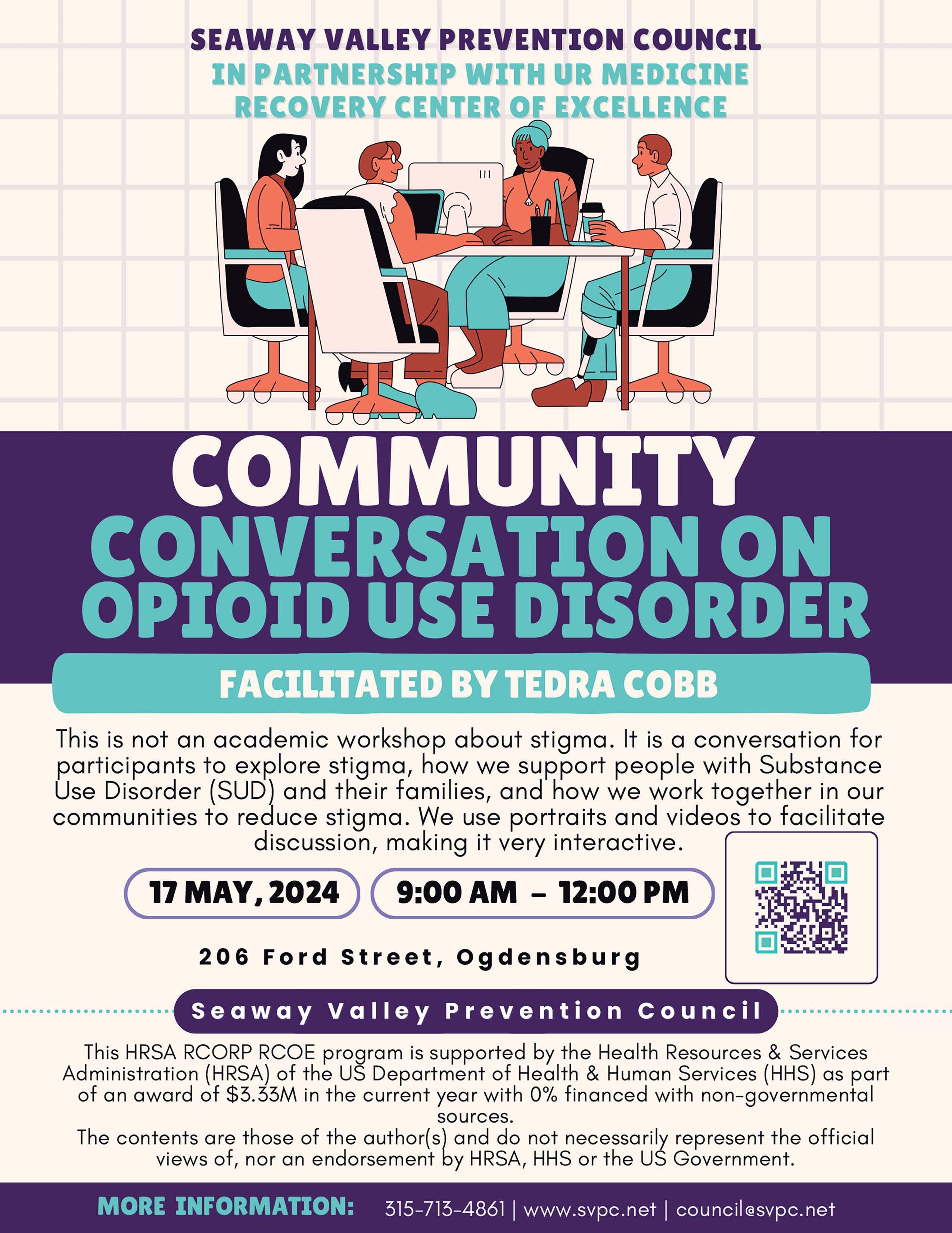 Community Conversations: 9:00am - 12:00pm Train the Trainer: 1:00pm - 4:00pm Wynn Hospital 111 Hospital Drive Utica, NY 13502