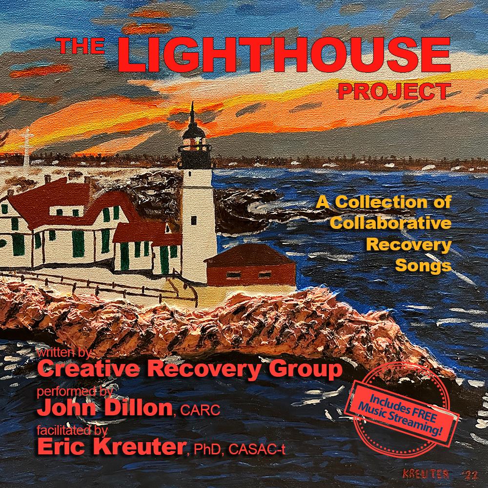THE LIGHTHOUSE PROJECT is a collection of songs/ poems/essays written by members of the Creative Recovery Group, Eric Kreuter and John Dillon, a singer-songwriter in long-term recovery from substance use disorder. The 60-page book contains lyrics and the poems and stories that inspired them, as well as supportive material on the power of creativity in recovery. Also available as a CD or Digital Download.