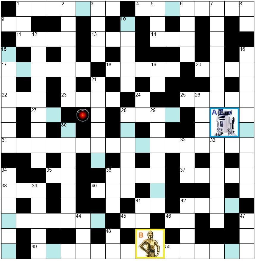 12. Disco 2000 15. Level 42 16. 12 Angry Men 19. K9 21. Script 24. 45 26. Elms 28. Become 29. 2 Point 4 30. HAL 9000 32. Y2K 33. S Club 7 34. Area 51 36. 007 39. Durer 41. G7 42. C-3P0 44. Rot 47. Pin 48. M6