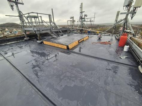The photograph shows a section of the newly installed roof covering.